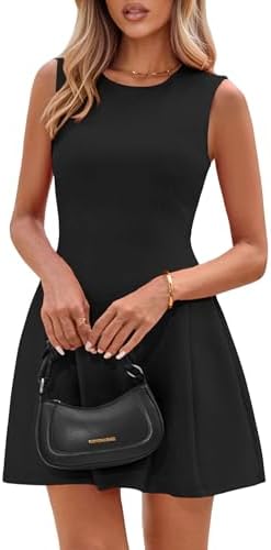 Tips: XS=US 0-2, S=US 4-6, M=US 8-10, L=US 12-14, XL=US 16. Crafted from lightweight, breathable fabric with just the right amount of stretch, this dress drapes over your curves gracefully while offering complete freedom of movement Chic Designs: The classic fit and flare silhouette features a fitted bodice that gracefully transitions into an a-line skater skirt, creating a flattering shape for all body types. Make a stunning statement with this sleeveless dress Matching Style: Dress it up with heels and statement jewelry for evening elegance, or pair it with flats for a relaxed daytime look. Layered under a tailored blazer, it transforms into polished office attire ideal for business settings Occasions: The stunning solid color adds a pop of confidence to your wardrobe and the simple design is ideal for various occasions from casual outings to semi-formal events, wedding, cocktail, dinner party, graduation, date night, office wear Color Options: white graduation dresses; beige short formal dress; pink date night dress for women; green homecoming dresses; red party dress for women; blue cocktail dress for women wedding guest; black office dress; dusty blue dinner dress