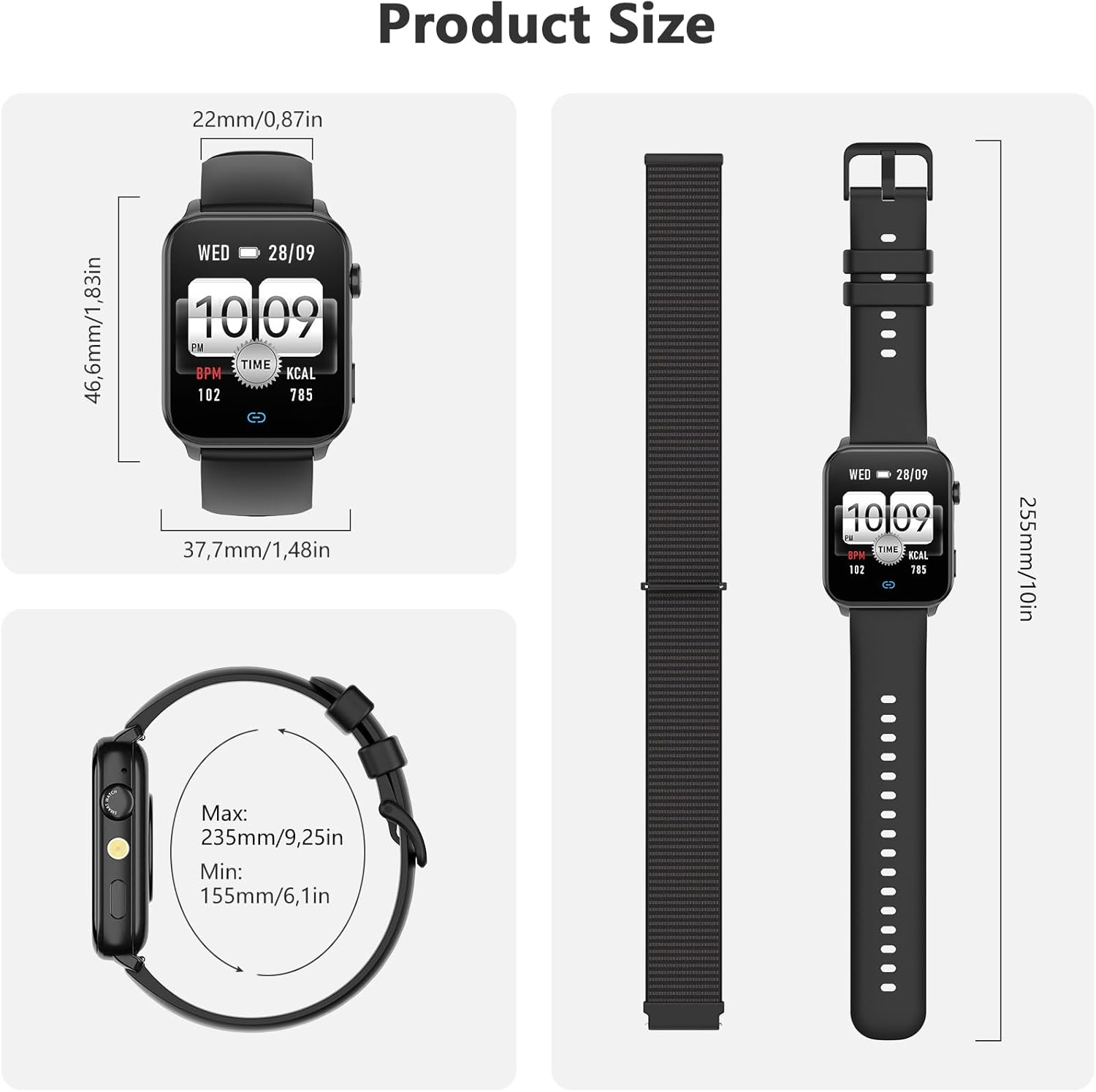 Blackview Smart Watch for Men Women,1.91" HD Touchscreen Fitness Watch with Flashlight, Bluetooth Notifications\/Make Calls, Heart Rate\/Sleep Monitor\/2 Straps, Fitness Watch for Android\/iPhone