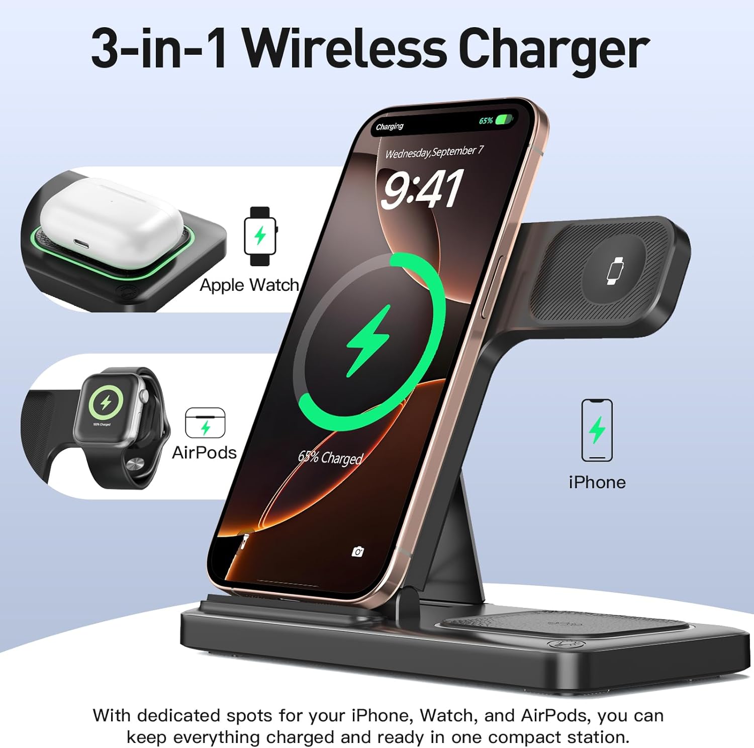 2026 Traveling Portable Wireless Fast Charger for Apple & Android Charging Station,3 in 1 Charging for iPhone 17 16 15 14 13 12 11,Apple Watch & Air pods 4 3 2 Pro,Samsung Galaxy-Gifts for Fam