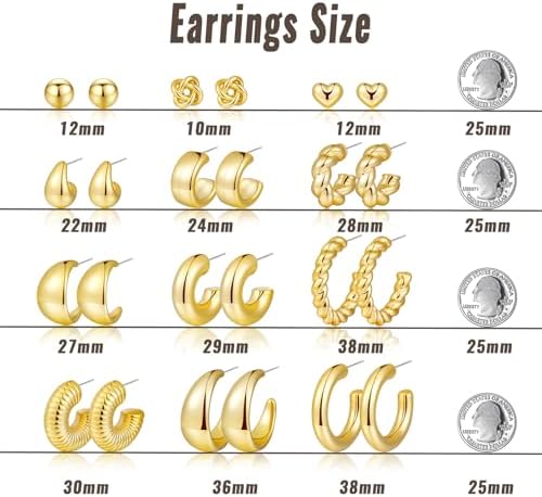 Gold Hoop Earrings Set: These 12 pairs of women's earrings include 3 pairs of stud earrings and 9 pairs of hoop earrings, made of high-quality metal, lead-free nickel, with low allergenicity, polished to maintain luster for a long time, without fading or rusting, making you look radiant. Please Note: Ear needles are soft, if the ear needles you received are bent, please don't worry, this is normal, just lightly straighten it Gift Idea: This earring set is a great choice thanks to its variety of styles. So you can give it to your mothers, lovers, friends or yourself onbirthday or other festivals, just to express the most sincere love to them Suit for Any Occasions: Our hoop earrings set off your charming temperament in any occasions, perfect for wedding, engagement, anniversary, graduation, party, prom, etc FANDY Jewelry: We're committed to providing consumers with high-quality and stylish jewelry at an affordable price. Classic, fashionable, set, cost-effective, high-quality jewelry