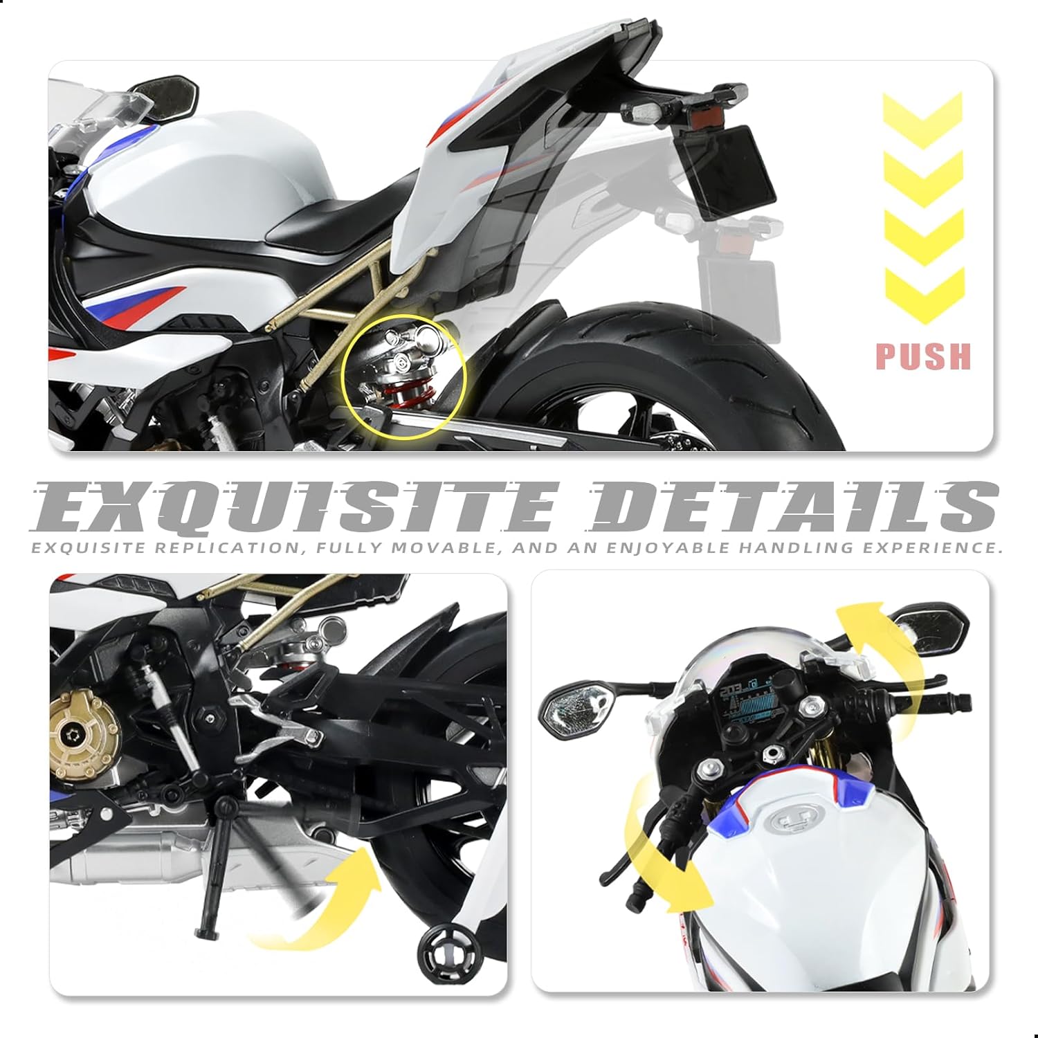 Risopen 1:9 Motorcycle Model for BMW S1000RR Metal Die-cast Motorcycle Model No Assembly Required Mini Finished Moto Gift for Adult(White)