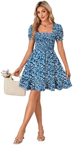 Fabric: Women's Ruffle Short Dress is made of soft and Lightweight Material, and this Casual Dress fit for most figures and hug your body thanks to its great elastic fabric. Features: The flowy mini dress adopts floral print, unique and fashionable. The length above the knee and high waist design of this dress visually elongates your legs, showing your tall figure and long legs. Very suitable for the Hot summer! This is a must-have dress in the wardrobe. Match: The ruffle dress has Big Stretchy and Fits for any Cup Size. Perfect for Pairing with Your Fave Boots for an Extra Cute Fit. You can Also Pair it with High Heels and Summery Sandals. Occasions: You will catch everyone's attention in every occasions with this short sleeve smocked dress. You can create a fresh look with sandals, high heels, a bag and stylish accessories for party, cocktail, beach, wedding, homecoming, vacation, holiday. Please check the Rooscier's size chart carefully before placing purchase and hope you can order the perfect size for yourself.