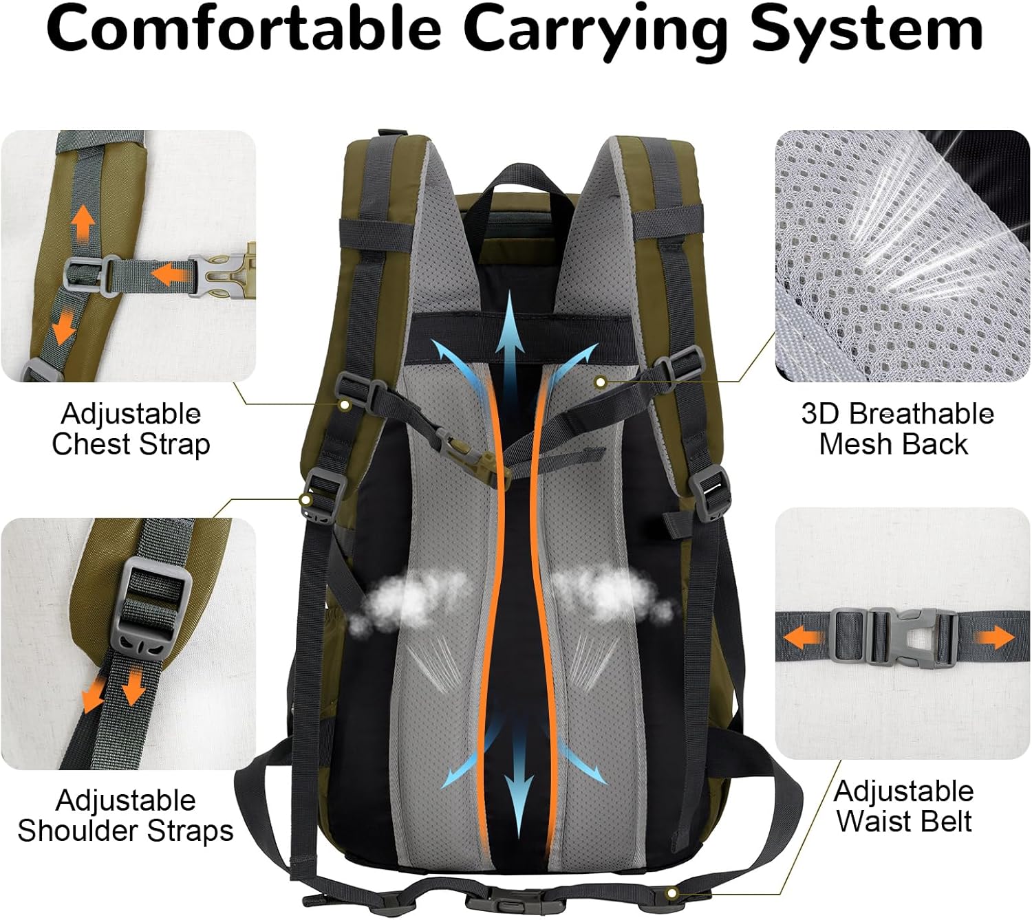 - Soft & Comfortable: The back and the shoulder straps are padded with 3D sponge, which are soft and comfortable. The mesh design is breathable to dissipate heat and prevent perspiration. There are chest straps that can be adjusted up and down, so they can adapt to a variety of body types. There is an adjustable waist belt to be able to distribute pressure.