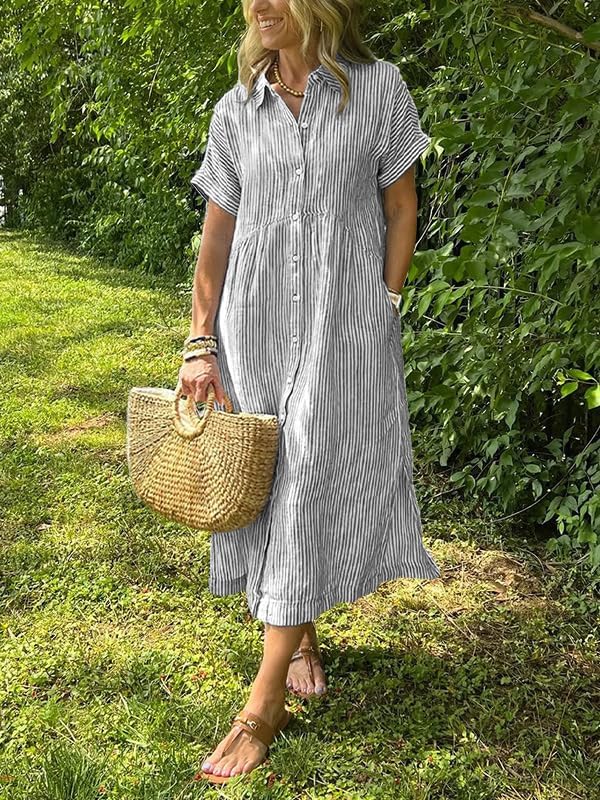 Please check the "Size Chart" Carefully before ordering. Our size chart consists of two parts: the Body size chart and the Garment size chart. You can refer both size charts to pick appropriate size. If you have any size-related questions, feel free to contact us! Midi long button down shirt dress for women, featuring contrast color block stripe pattern, basic turn down lapel collar, front single breasted button up closure, a-line flared silhouette, short sleeve, below the knee length. Boho dress is made of high quality and breathable cotton material, which is comfy and cool to wear in hot weather, spring and summer; Flattering dress in relaxed fit to hide tummy fat, suitable for most body types to wear. Easy to match: You can match with slippers, sandals, sunglasses and straw hat for a beachy style. Also it can be worn as a long button up blouse to pair with your denim shorts, tank tops, cropped tops and so on; Fashion stripe dress can be dressed up and down to satisfy with your daily wear. Occasions: daily life, streetwear, school, office, wear to work, going out, beach, cocktail party dress, wedding guest dress, vacation, travel, holiday, hanging out with friends, lounge wear, dating, shopping, hawaiian, etc; Basic and simple design will never out of date!