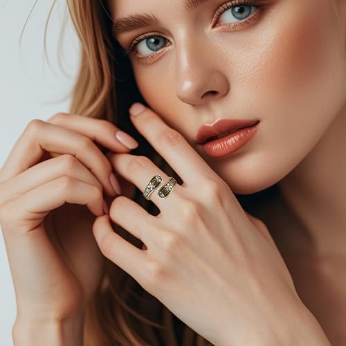 [Vintage Design] This spoon ring showcases a wrap-around design with detailed craved. The vintage ring features an open-ended silhouette, the overall design style combines retro and artistic elements [Material] Crafted from high-quality alloy with a gold plating, this 14k gold plated ring maintains its luster with proper care. The adjustable ring design ensures a comfortable fit while preserving the intricate detailing [Size & Fit] This open ring fits most finger sizes. The flexible design allows for easy resizing while maintaining the ring's structural integrity [As a Gift] Give a fashionable and unique 14k gold plated thumb ring to the person you love to express your most sincere feelings. These boho jewelry are perfect as gifts for birthdays, Christmas, Valentine's Day, Mother's Day, and anniversaries [Service] If you have any questions about our boho ring, please do not hesitate to contact us. We guarantee a prompt reply and will provide a satisfactory solution for you. Thank you for choosing our product