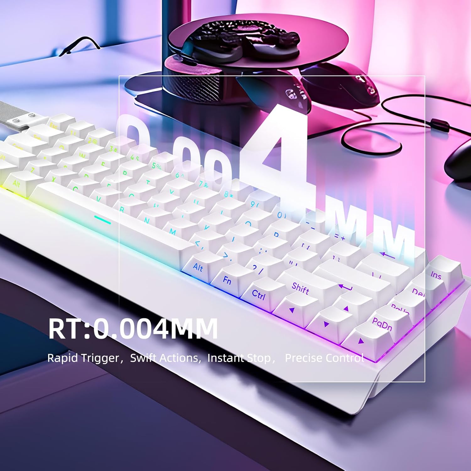 IROK Mer68 LITE Wired 68 Keys, Magnetic Switch Mechanical Keyboard, 8KHZ Polling Rate\/Latency As 0.125MS\/64KHZ All Keys Scan Rate\/ARGB, Hot Swappable Gaming Keyboard(White)