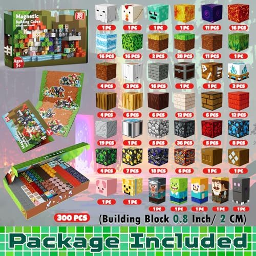 300 PCS Magnetic Blocks - Magnetic Building Blocks, Stacking Magnets for Kids, Sensory Toy for STEM Montessori Sensory Toys for Kids 3+ Boys and Girls Christmas Birthday Gifts
