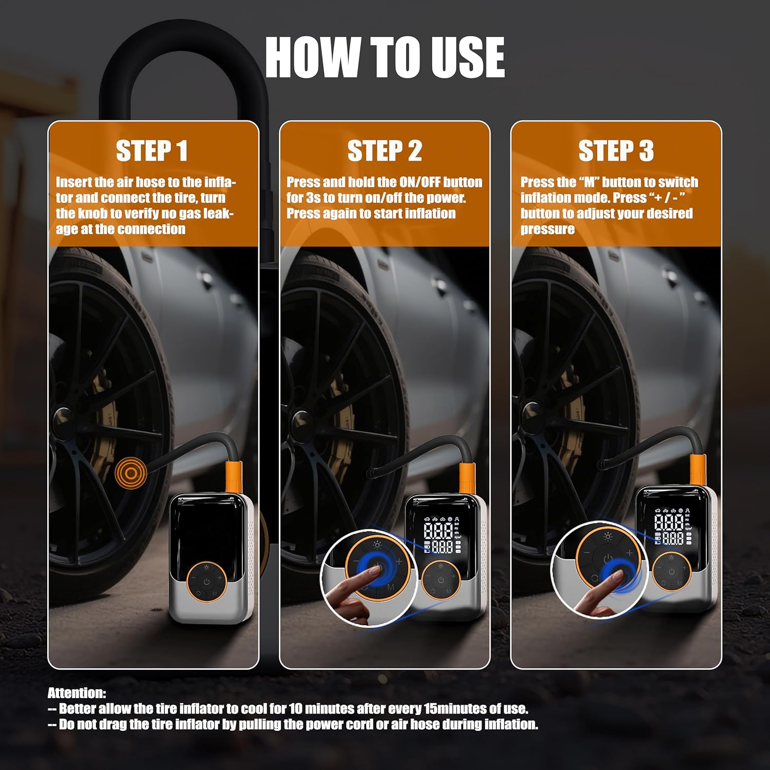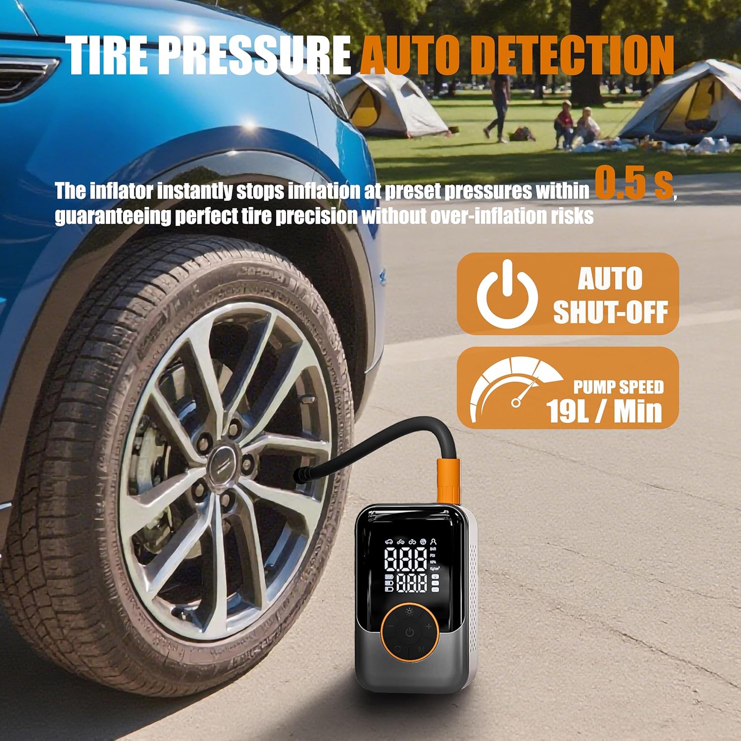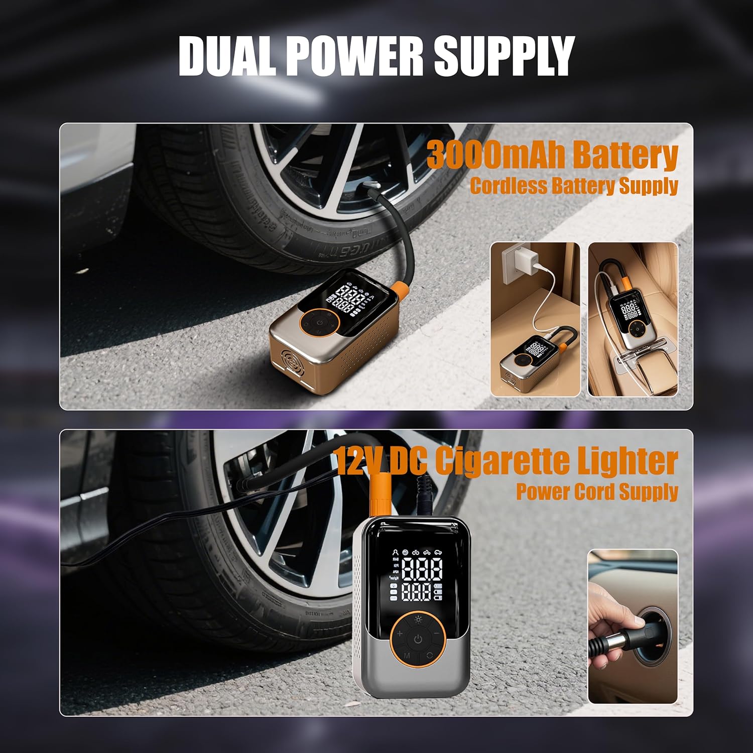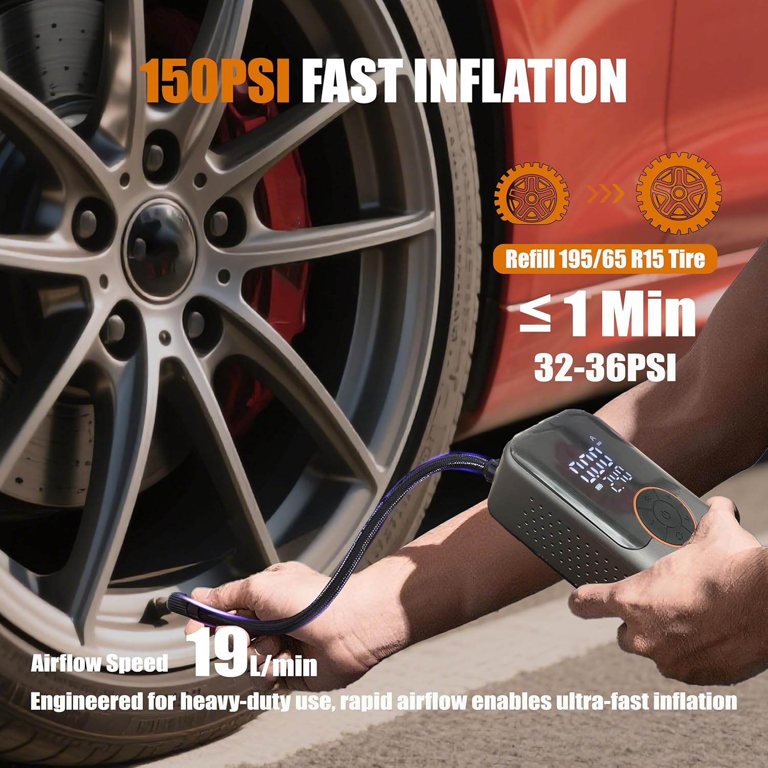 ReboostFast Cordless Tire Inflator, Portable with \u200Bdigital pressure gauge\u200B, \u200B150PSI, \u200BAuto shut-off\u200B & LED light\u200B, 12V DC\/Rechargeable dual mode\u200B, for \u200BCar