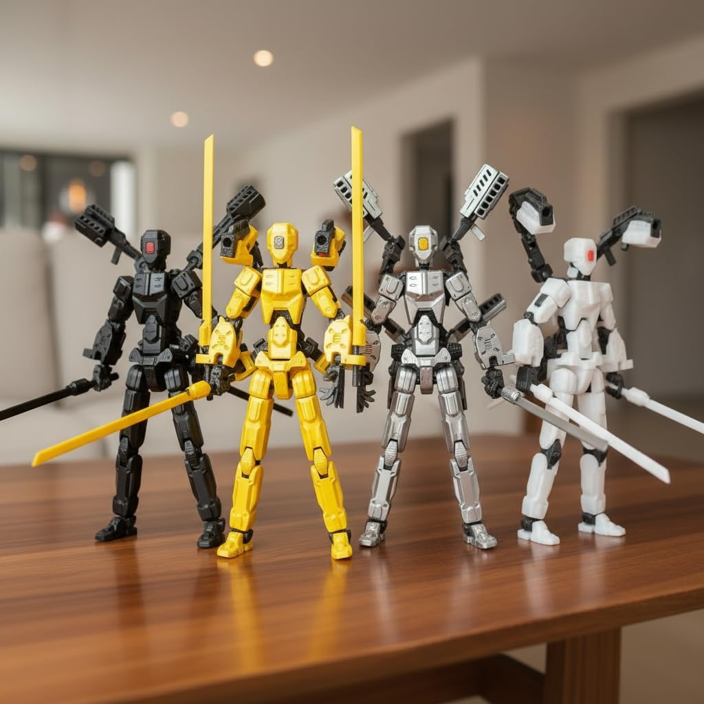 T13 Figure Set & Titan 13 Toys 4 Pack(3d Printed Action Figures Assembly Completed)(Multi-Jointed Movable)(Mecha Designs Includes Various Accessories)Dummy T 13 Figures Desk Decoration 5.5in