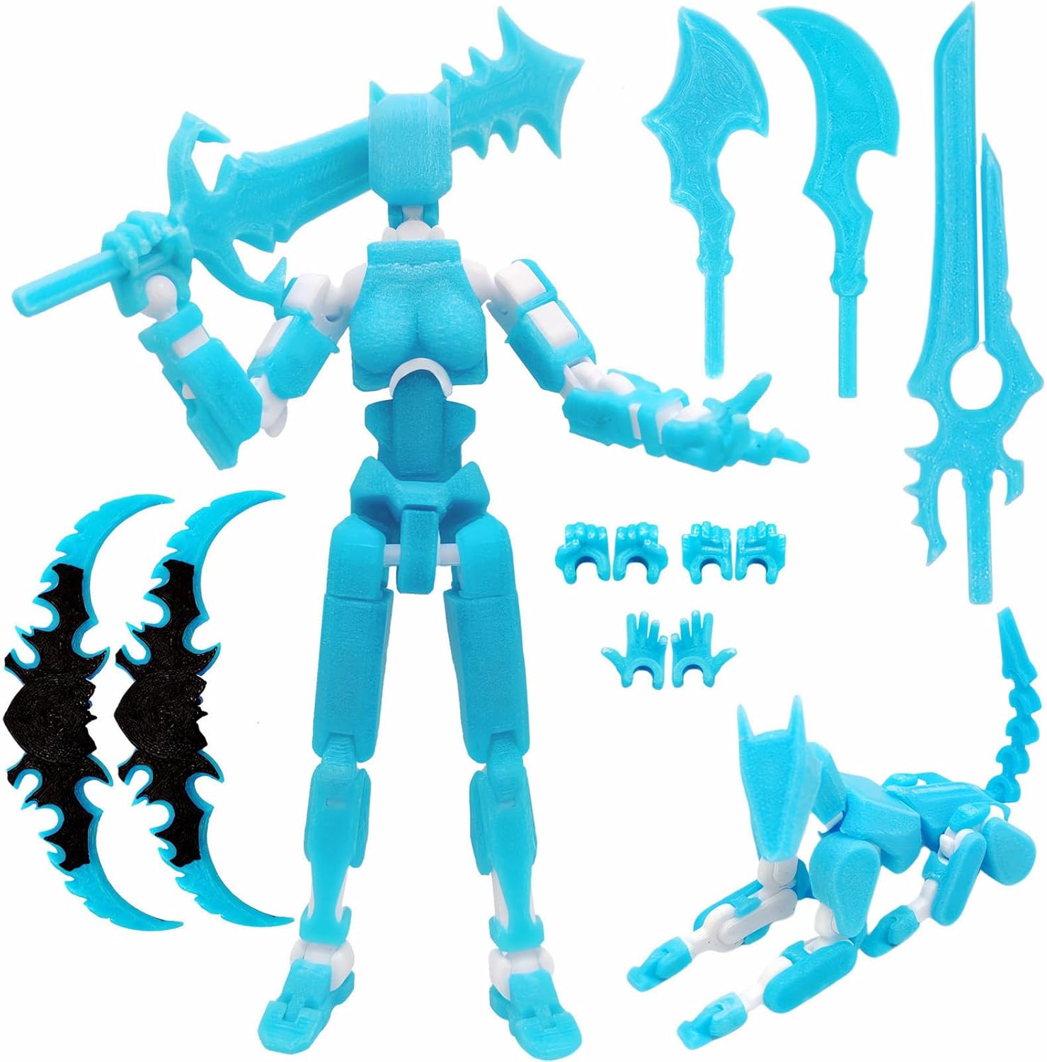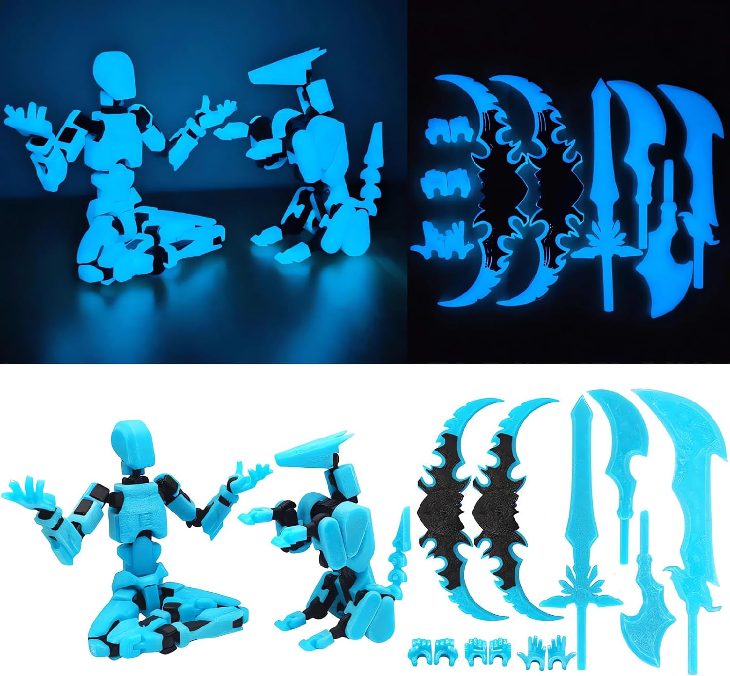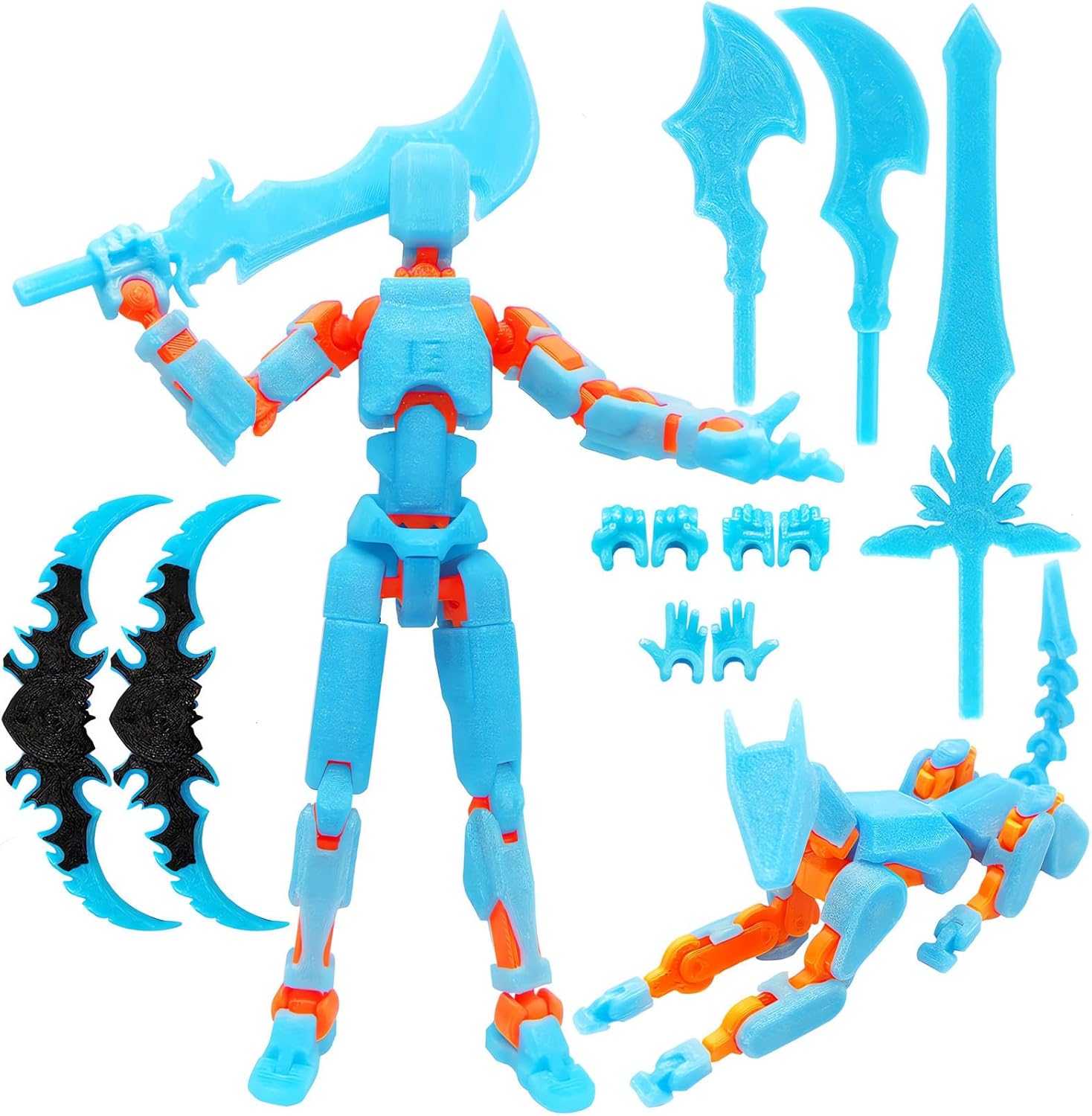 masijssa Titan 13 Action Figures (Grow in The Dark Blue) T13 3D Action Figure Set Already Assembled Dummy Robot Nova 13 Printed Multi-Jointed Movable Toy for Gift Collectors (Blue Black + Dog)