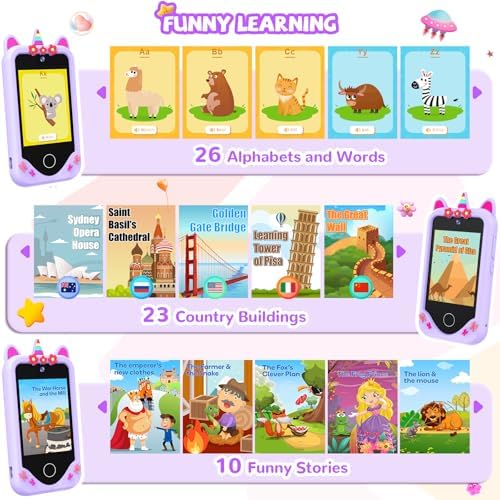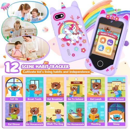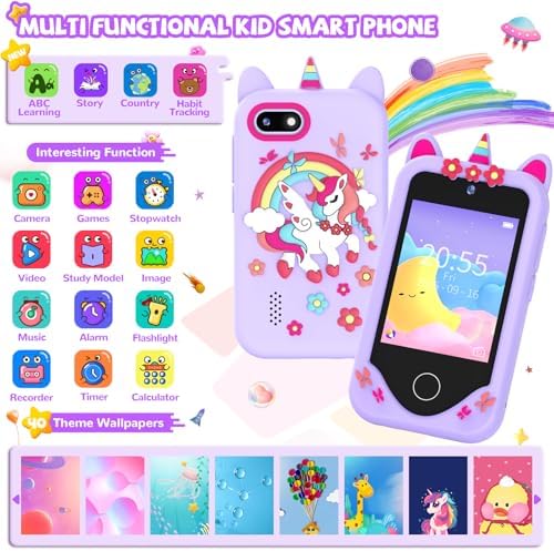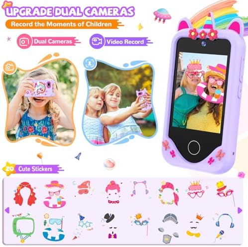 Kids Smart Phone for Girls Gifts - Toddler Birthday Gift for Age 3 4 5 6 Year Old, Kids Cell Phone Toy with 2.8” Touchscreen, Dual Cameras, Learning, Play Games, Video Player with 32 GB Card (Purple)