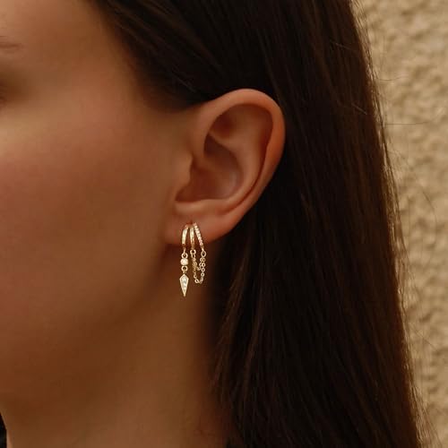 Gold Drop Earrings for Women: Our triple stacking earrings are designed for single ear and can be worn as is. Our 14K gold plated split wrap earrings with two different designs on the earrings make a stylish statement and are perfect for any occasion. These beautiful drop earrings are the perfect fashion accessory for any woman! Quality Material: Made of Brass with 14k gold plated , this eye-catching Huggie earrings are 100% handmade, hypoallergenic for sensitive ears, plated with 14k gold finish, won't turn your ears green Hypoallergenic Earrings for Women.:These stud earrings are classic and so elegant that women of all ages can enjoy them all day Dainty Packaging: The packaging adopts professional jewelry packaging that can be reused, with a minimalist style. Enclose the earrings between two transparent, flexible plastic membranes, that can clear and elegant display for your earrings is also an excellent choice for a gift. When you don't use the earrings temporarily, you can also put them back into the package, which is convenient for storage and prevents oxidation Warm Customer Service:If you have any quality issues about the silver earring sets what you purchased, please feel free to contact us,We will try our best to solve your problems