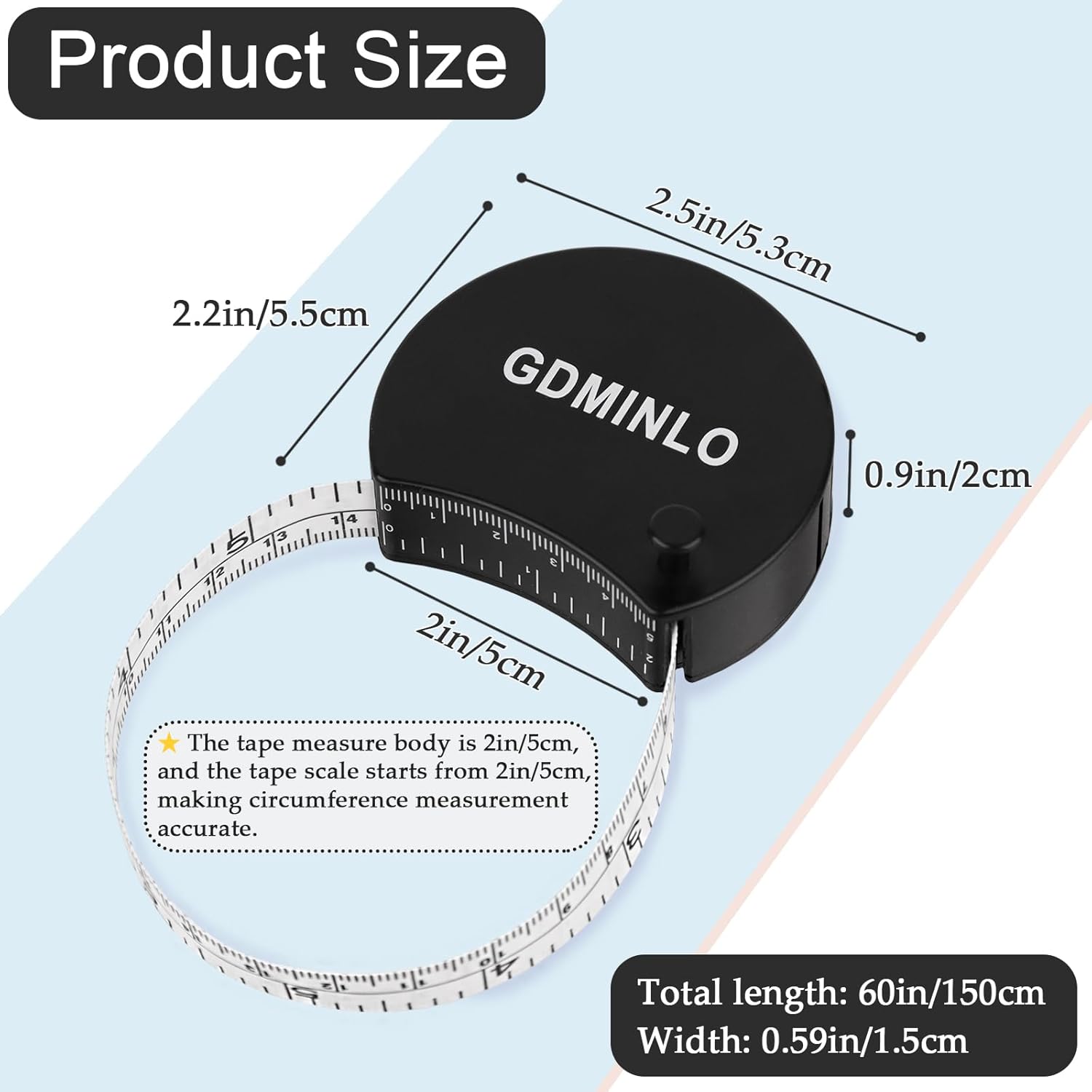 This versatile retractable measuring tape combines convenience with precision in your measuring needs. Featuring both imperial and metric scales up to 60 inches/150 cm, this black measuring tape offers accurate measurements for sewing, crafting, and body measurements. The soft, flexible design conforms easily to curves and contours while maintaining accuracy. Its retractable mechanism keeps the tape neat and compact when not in use, making it perfect for your sewing kit or craft supplies. The double-scale feature allows quick conversion between measurement systems, saving you time and calculations. The durable construction ensures consistent performance through repeated use, while the compact size makes it easily portable. Whether you're working on garment alterations, tracking fitness progress, or tackling DIY projects, this measuring tape delivers reliable measurements every time.