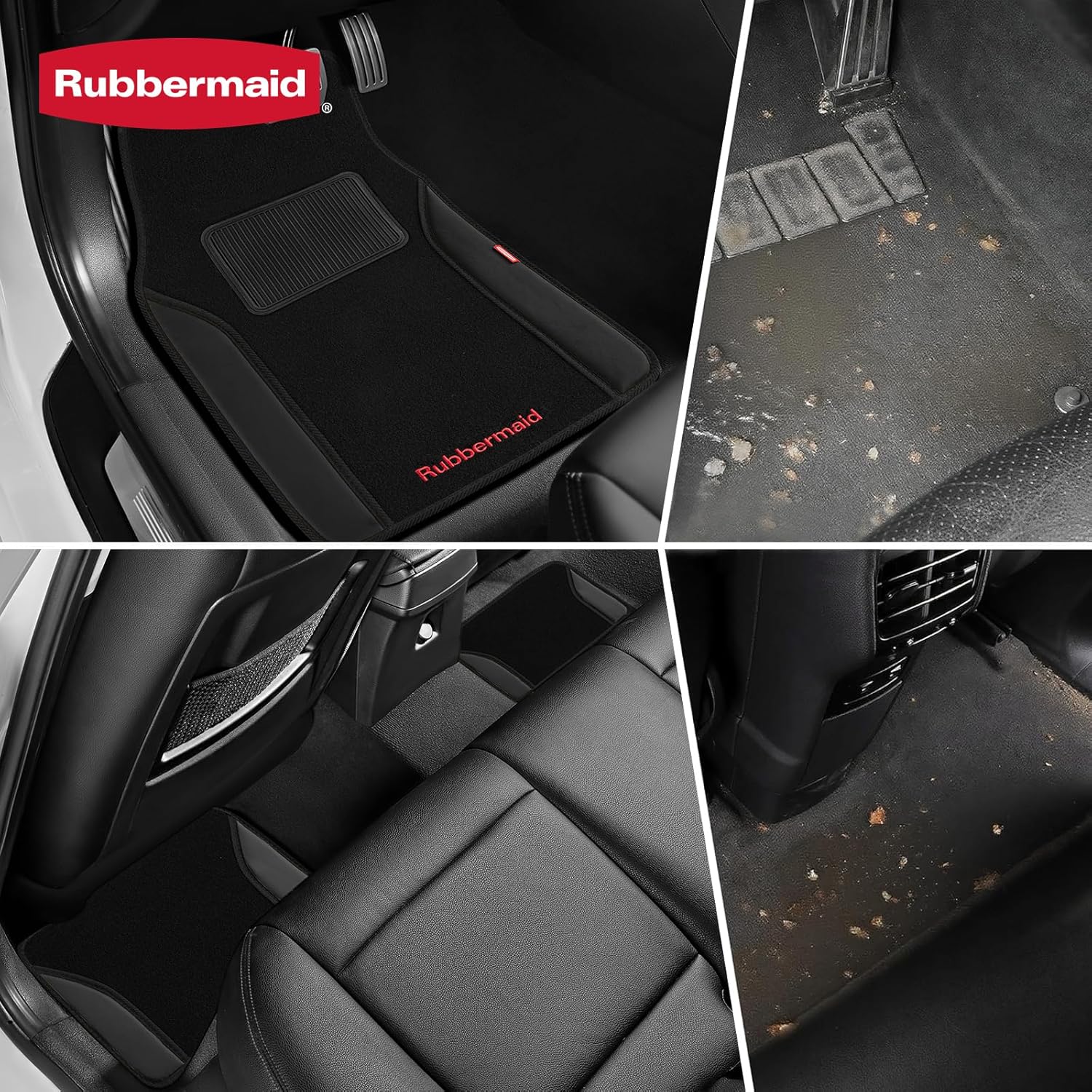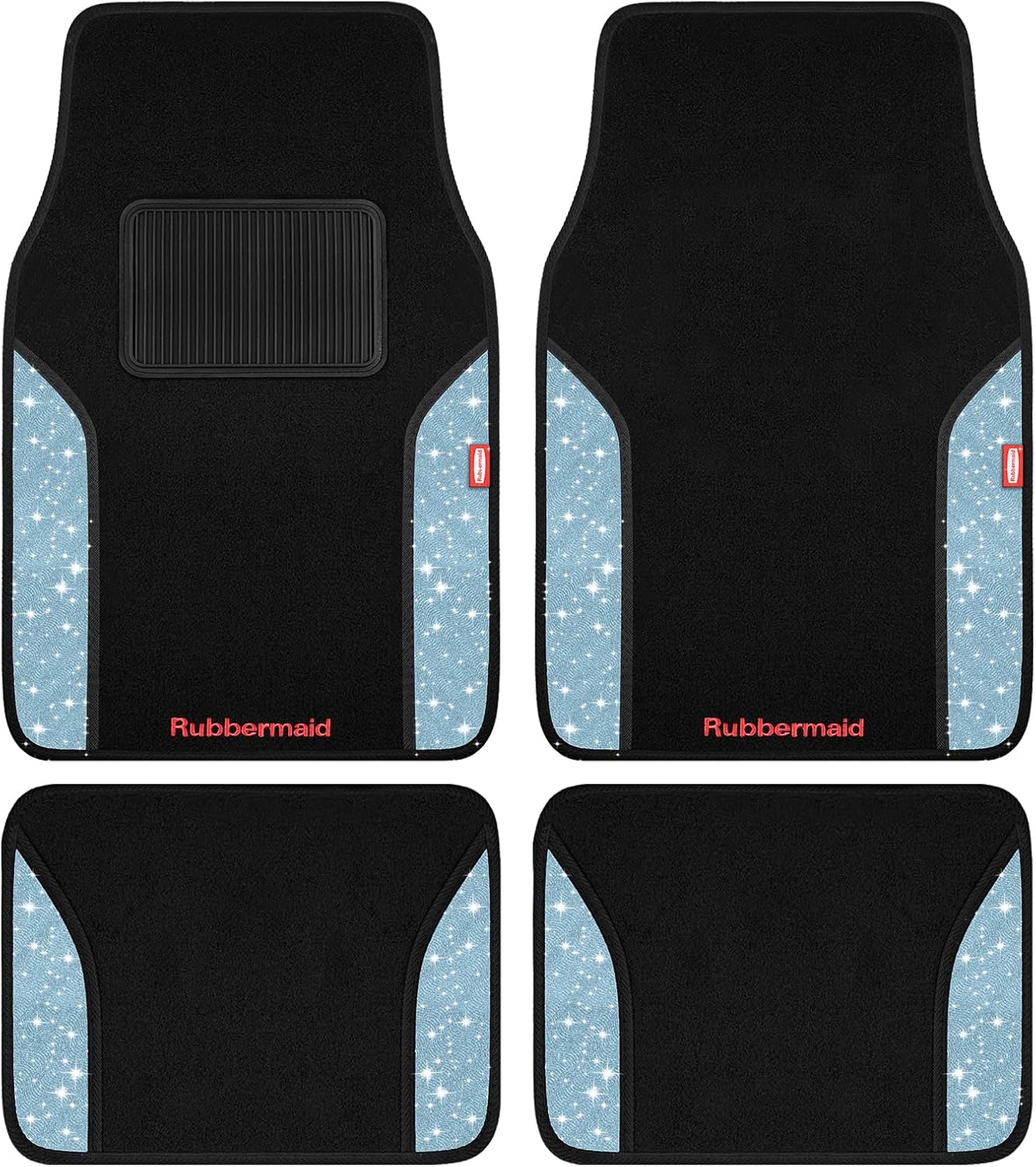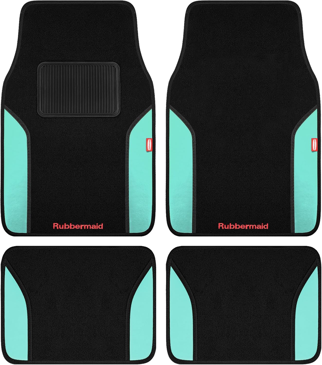 Rubbermaid Car Mats, Carpeted Floor Car Mat with Faux Leather & Built-in Heel Pad, Two-Tone Car Rug Floor Mats, Stylish Carpeted Floor Mats for Cars, Trucks & SUVs Black Color