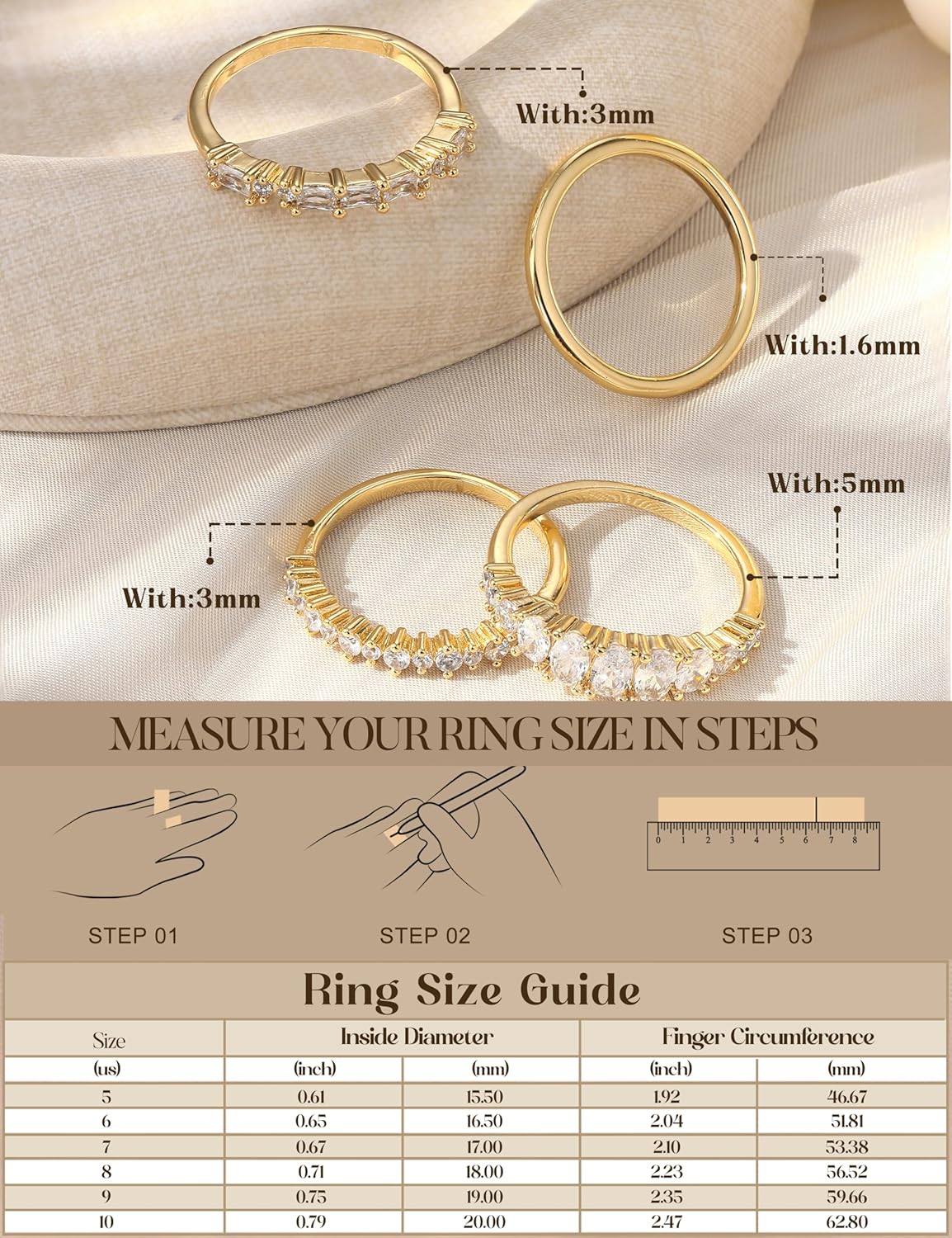 LOLIAS 14K Gold Plated Stackable Rings for Women Non Tarnish - Dainty Cubic Zirconia Wedding Bands Ring Set Minimalist Trendy Statement Engagement Promise Thumb Rings Stacking Size 5-10