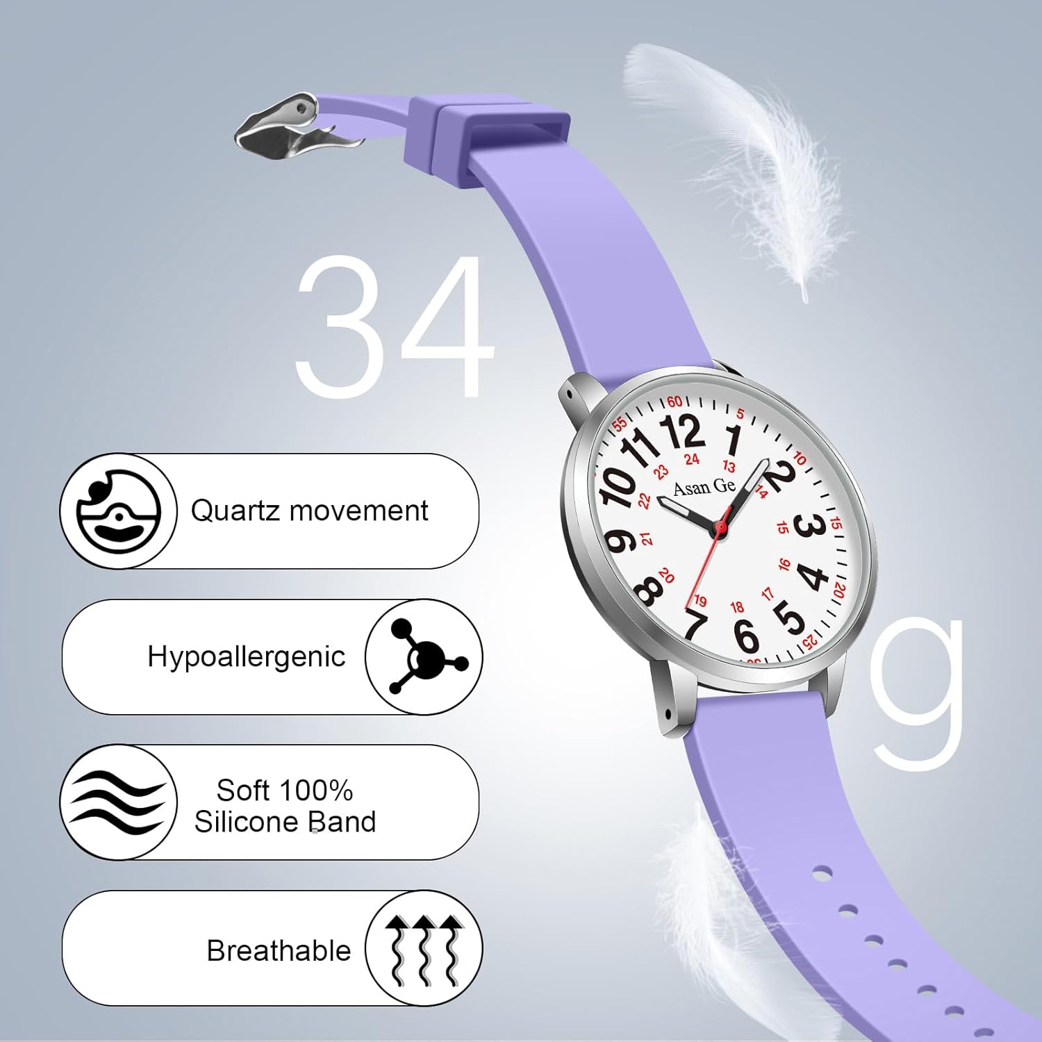 Asan Ge Watches for Women, Fashion 3ATM Waterproof Minimalist Lightweight Easy-to-Read Analog Silicone Watch Suitable for Daily Work, Leisure, Outdoors