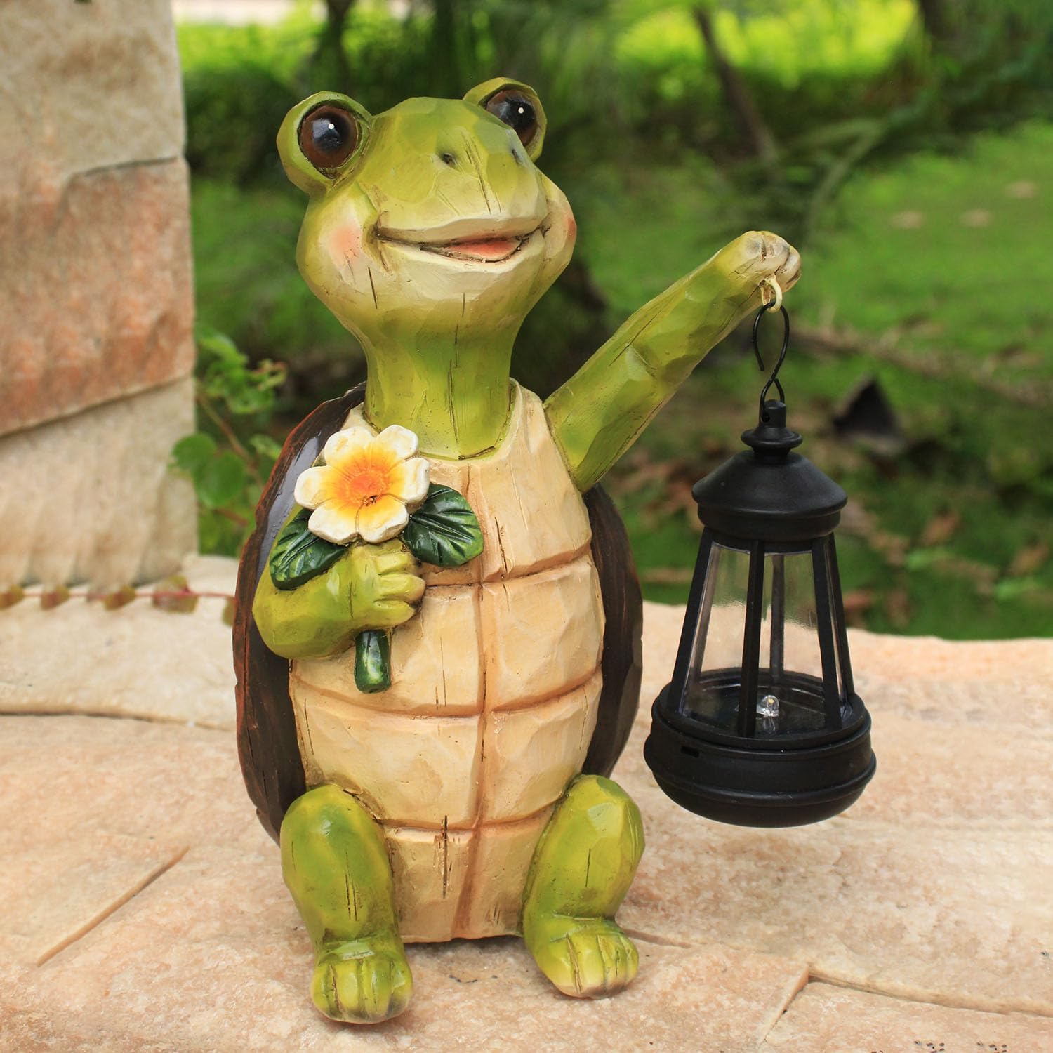 - [An interesting turtle] Turtles have cute appearances, holding a flower in their arms and carrying a small lantern, adding fun to your garden