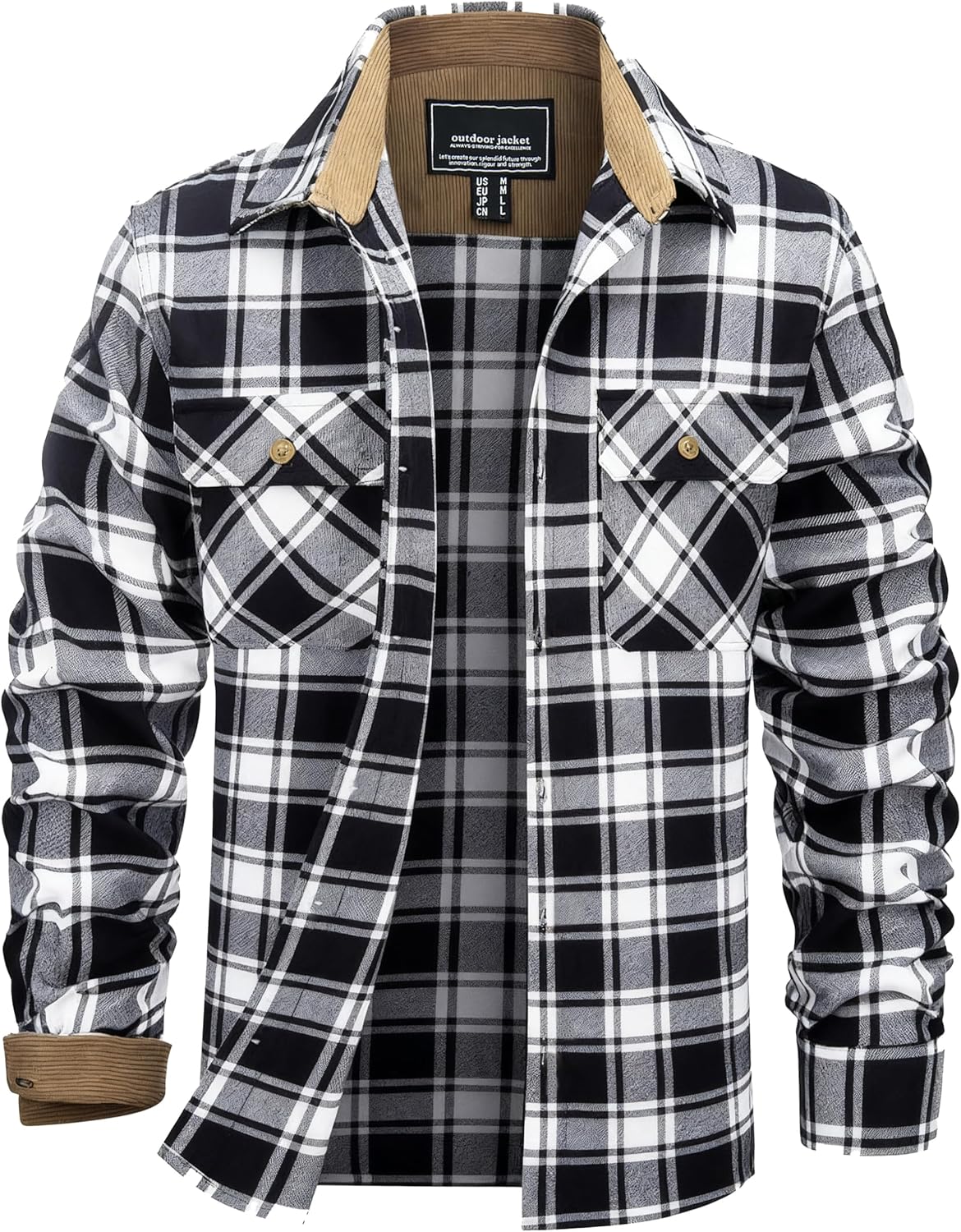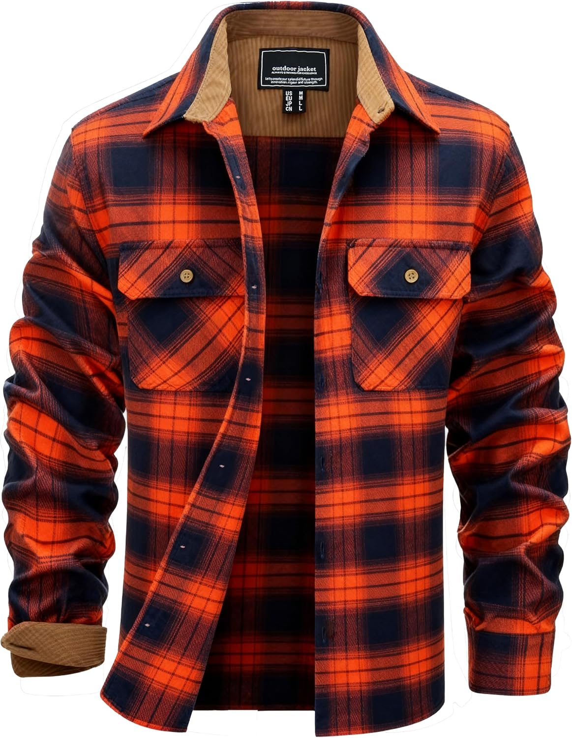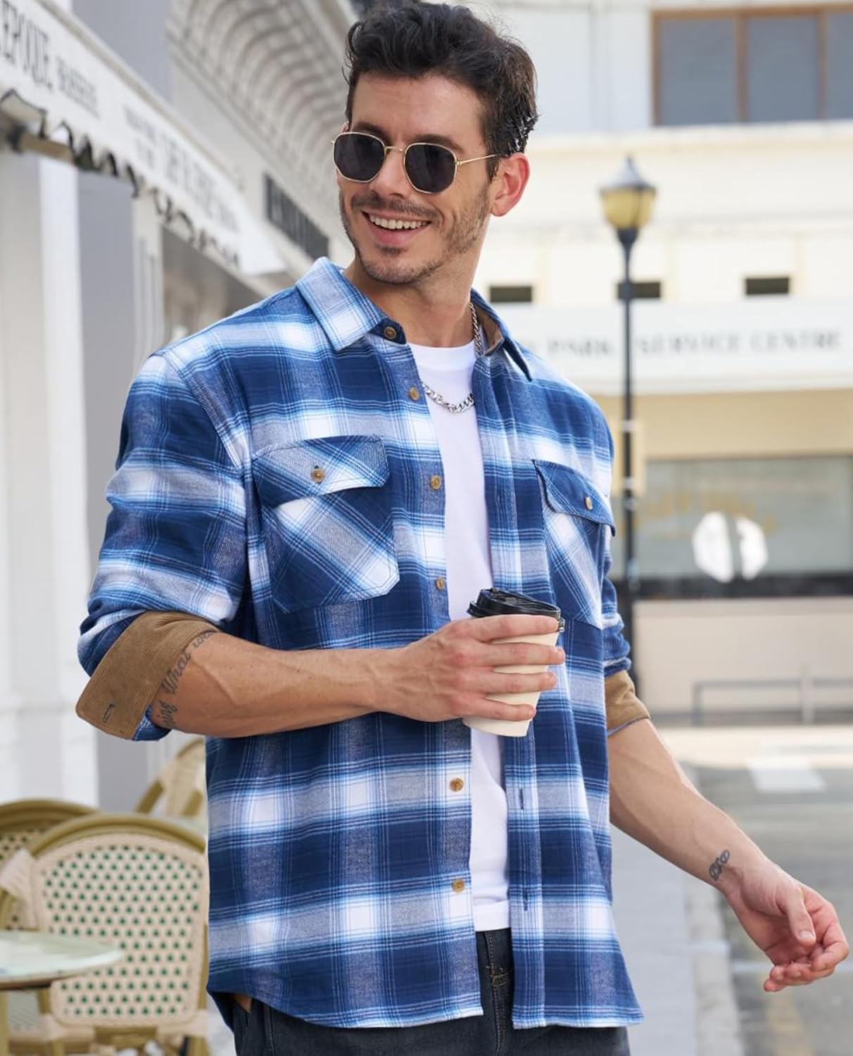 EKLENTSON Men's Flannel Shirts Lightweight Cotton Button Down Long Sleeve Shirt Casual Plaid Pocket Shirts Outdoor Work