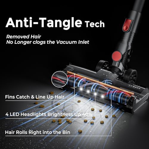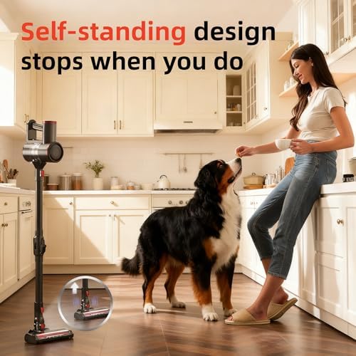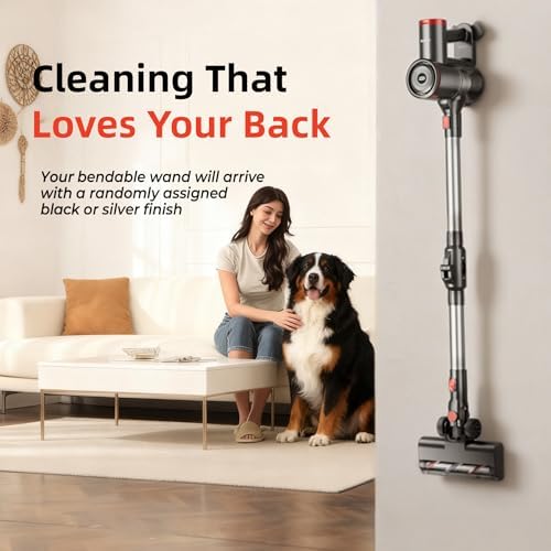【Cleaning without Bending】The 40KPA vacuum cleaner cordless bendable tube reaches 23.3" under furnitures, beds, sofas and low cabines capturing hidden dust and pet hair. Its ergonomic design reduces spinal strain by 72%, protecting your back and knees during whole-home cleaning. 【40KPA Suction for All Floor】Powered by a strong motor, the RoneAir cordless vacuum is ideal for home with mixed flooring. Switch between 40,000Pa Turbo Mode for deep cleaning and 29,000Pa Standard Mode for daily touch-ups. It captures pet hair, bread crumbs, and cat litter on hardwood, low-pile carpets, and tiles—solving everyday messes effortlessly. 【45-Minute Extended Runtime】Powered by a 6×2600mAh battery, the RoneAir cordless vacuum provides 45 min of cleaning in Normal Mode (15 min in Turbo Mode) on a single charge—enough to cover most average-sized homes, and ideal for small apartments or quick cleanups. 【Self-Standing Design for Easy Pauses】Answer a call, move between rooms, or handle a quick task—the RoneAir cordless vacuum stands securely on its own, with no wall mounting needed. For permanent storage, the included wall mount holds the vacuum for easy access. Its stable upright design prevents tipping and dust spills, keeping your floors and vacuum clean and safe. 【Anti-Tangle Brush Roll】The RoneAir carpet vacuum's anti-tangle brush roll actively captures long hair and pet hair, drawing stubborn clumps from carpets and fine strands from crevices into the dust cup.With its 180°/90° rotatable head and 40% brighter LED light, it easily cleans under furniture and in dark corners—no moving items required. 【5-Stage Filtration for Fresher Air】RoneAir cordless vacuum cleaner's upgraded dual‑cyclone and 5‑stage filtration captures 99.97% of dust and allergens down to 0.3 microns. The HEPA and stainless steel filters ensure clean air, while one‑touch emptying keeps hands clean. Its washable, reusable HEPA filter lowers long‑term cost, ideal for homes with pets or allergies. 【1L Dust Cup & 6-in-1 Design】RoneAir household vacuum features a 1L removable dust cup, letting you clean large areas without frequent stops and fewer trips to empty. Equipped with 6-in-1 accessories, a crevice tool reaches deep into corners, edges, and along baseboards; the 2‑in‑1 brush switches between dusting and upholstery for furniture, curtains, and delicate surfaces. Effortlessly clean sofas, car seats, dog bed and more.