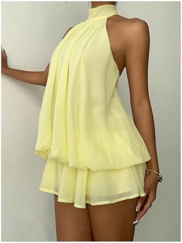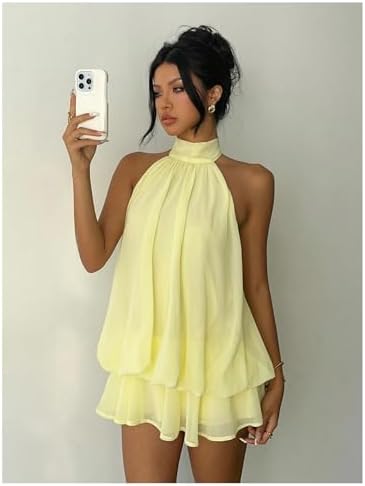 Verdusa Women's Chiffon Halter Drop Waist Wedding Guest Dresses Ruffle Summer Mini Dress Brunch Outfits