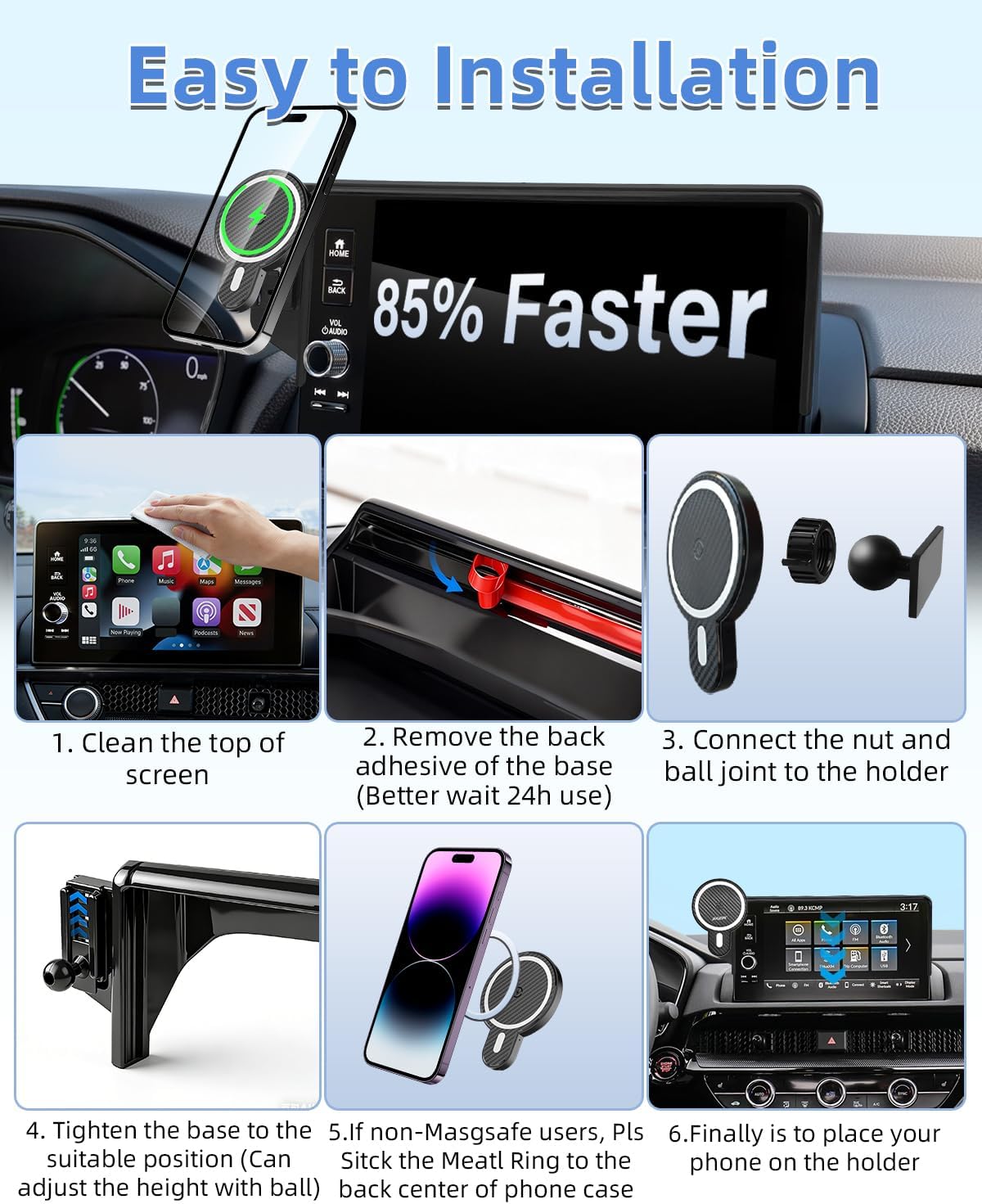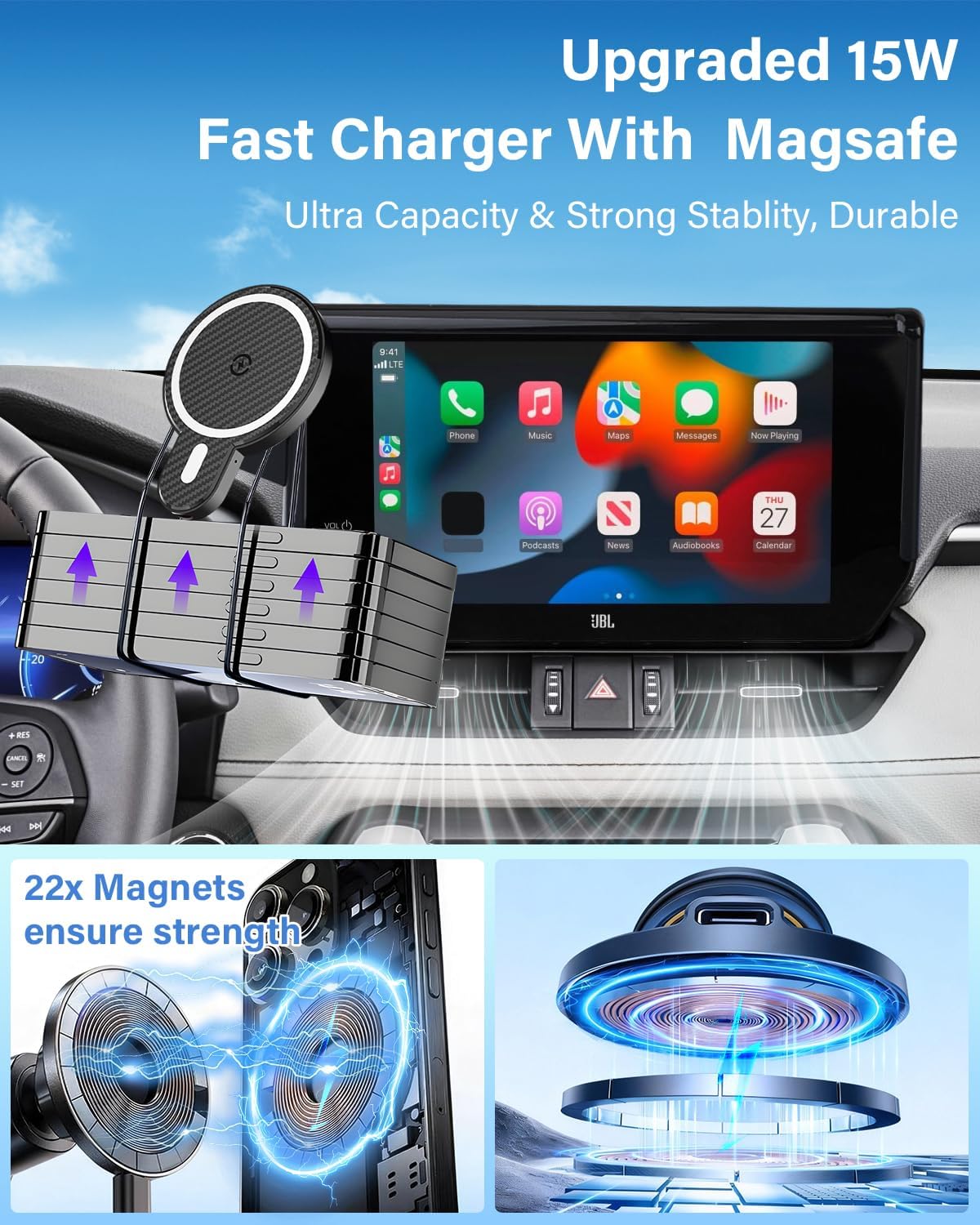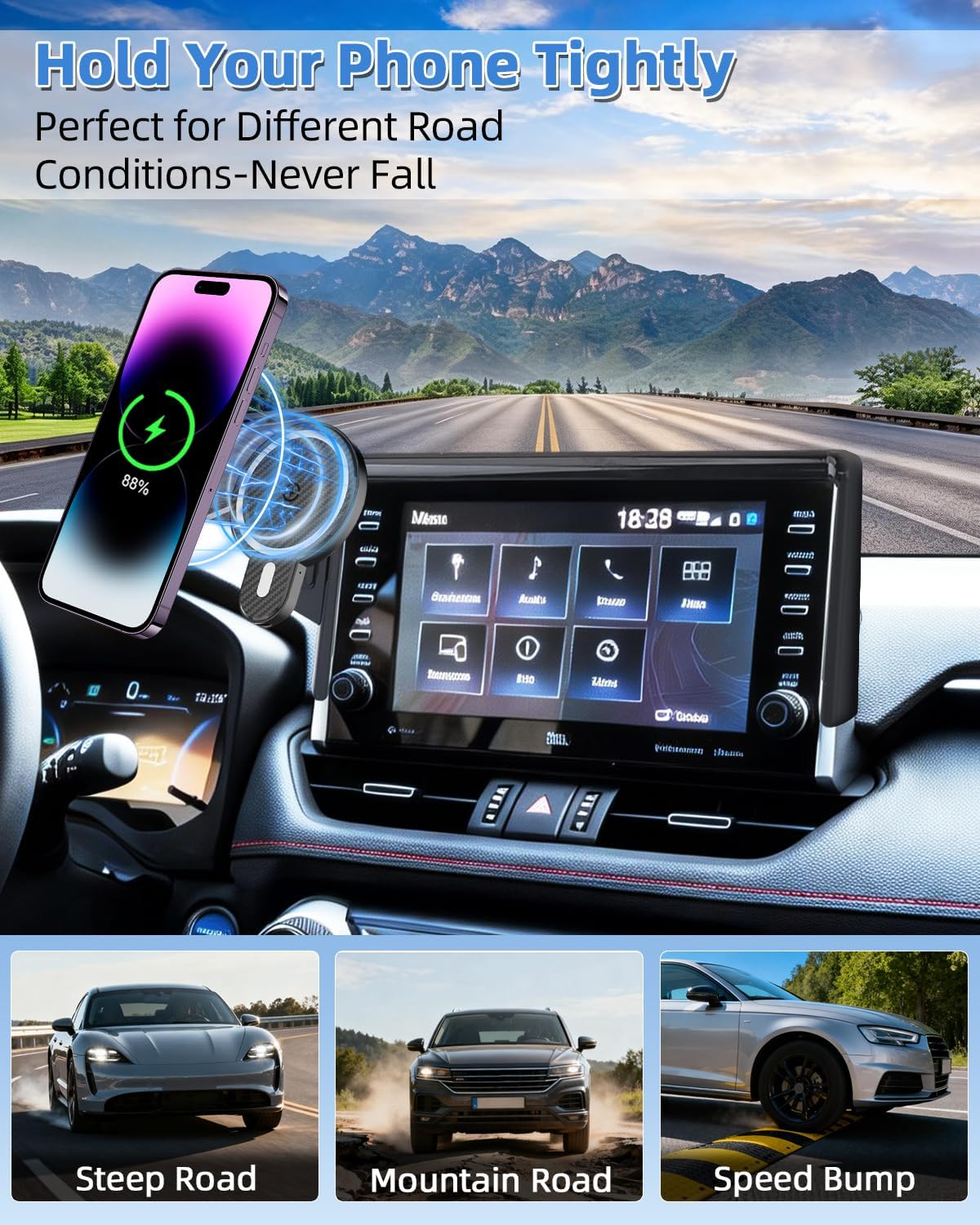 PZK Car Phone Holder for Toyota RAV4 2019-2025 Hybrid LE\/XLE\/Premium Accessories 7\/8-Inch Screen Magnetic 15W Fast Wireless Charger Car Phone Mount 360° Rotation Not Affect Vent (Not Fit 9\/10.5 in
