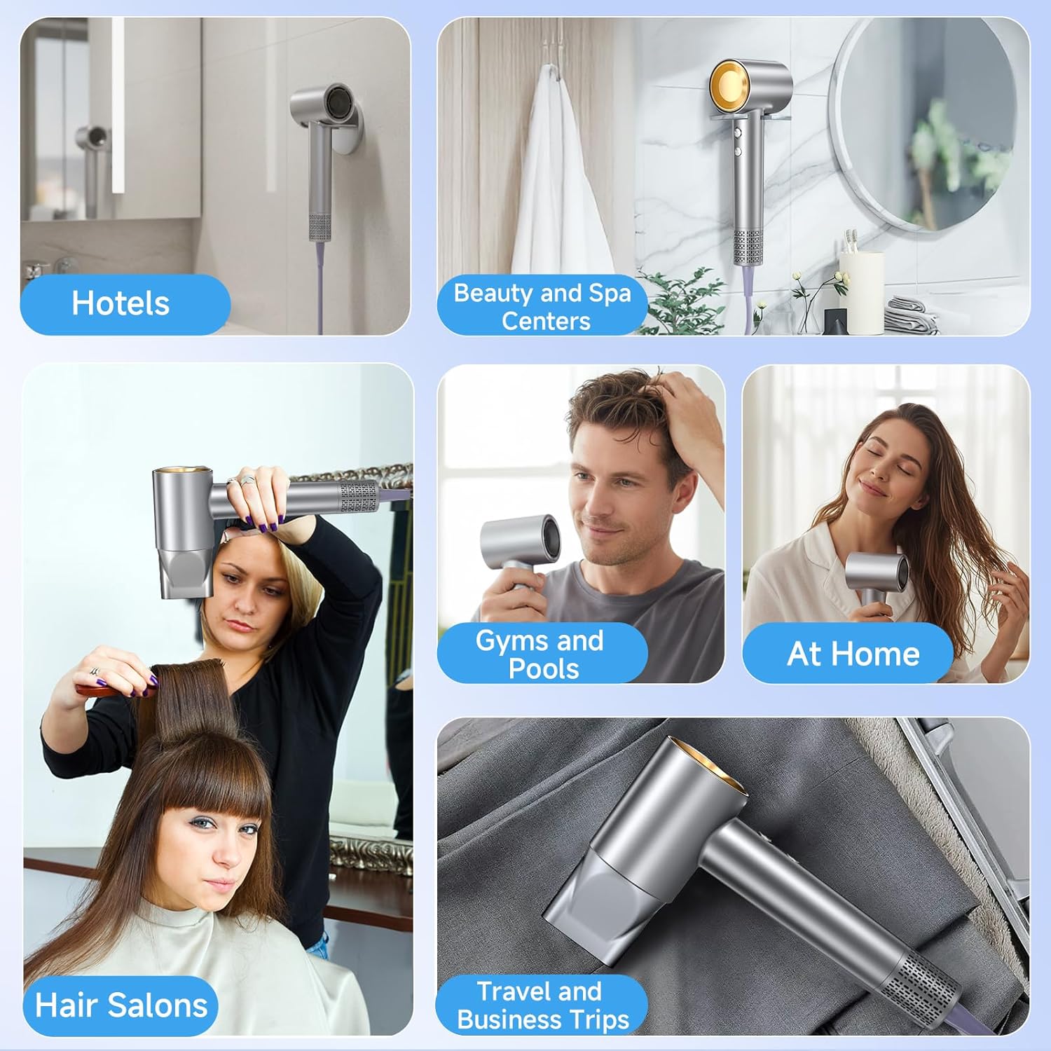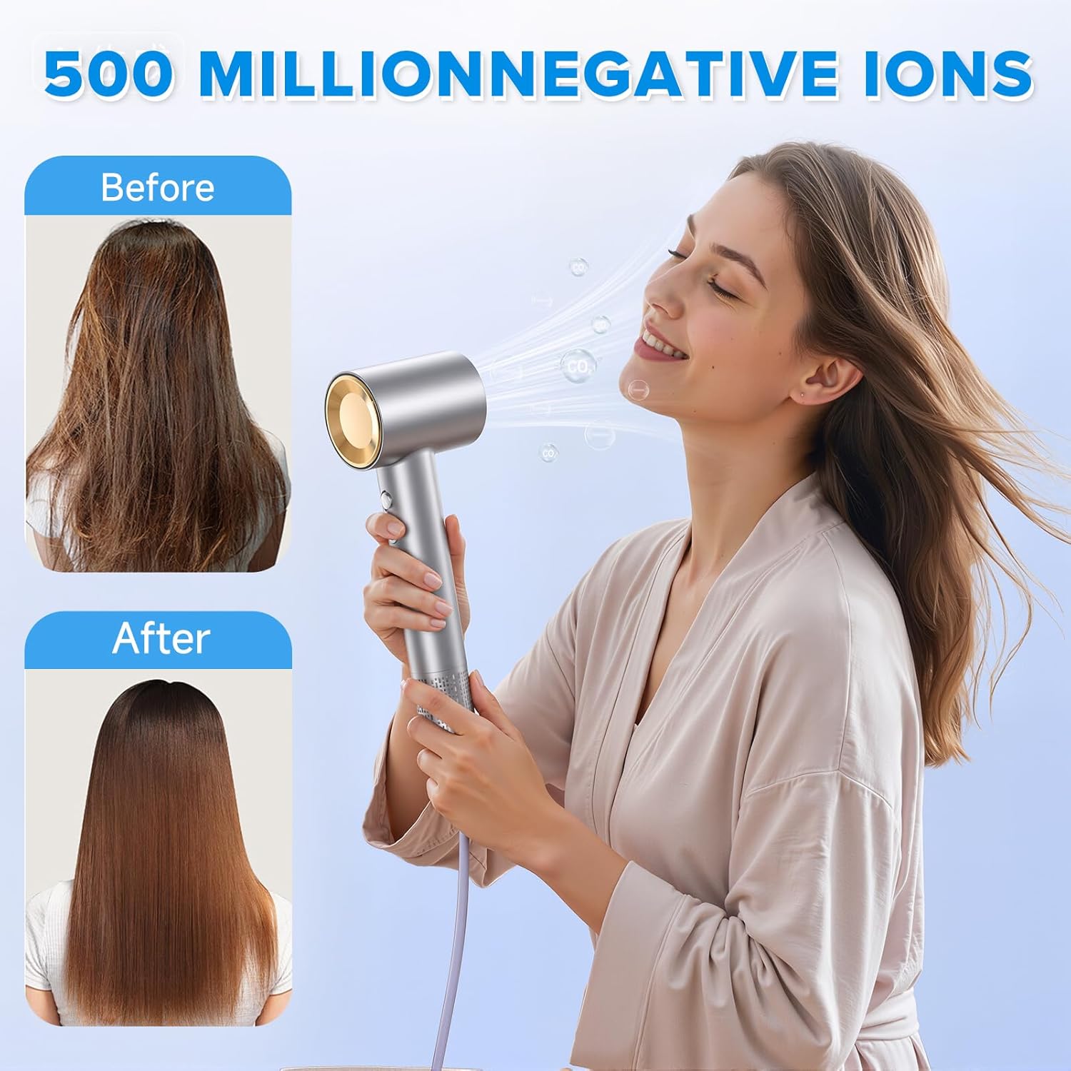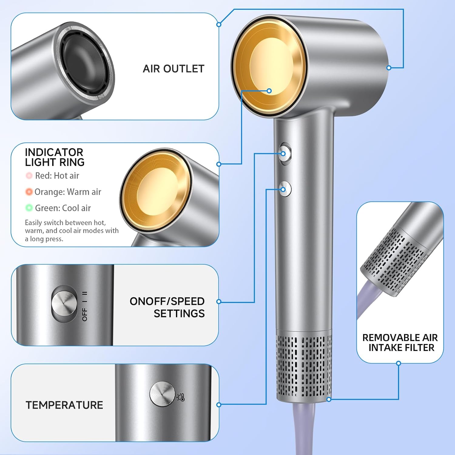 Hair Dryer, 150,000 RPM Brushless Motor, Ultra-Fast Drying with 3 Heat Settings & LED Lights, High-Speed Ionic Blow Dryer, Low Noise Lightweight with Diffuser & Nozzle for Home, Salon, Travel