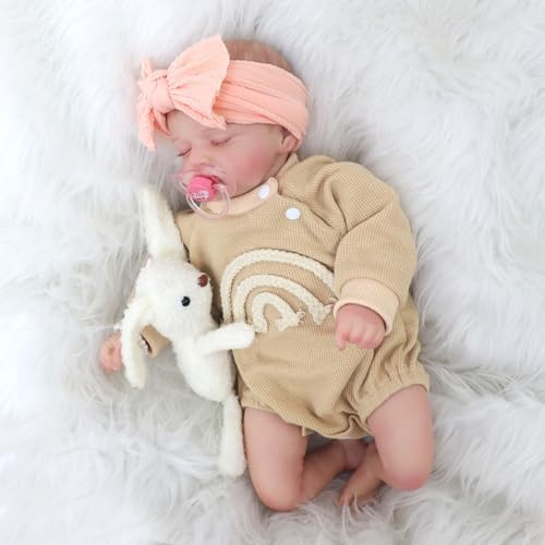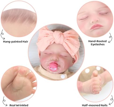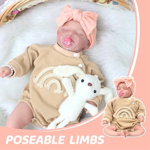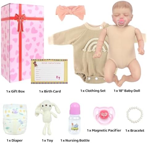 Ecore Fun Lifelike 18 Inch Reborn Doll- Realistic 18" Sleeping Baby Dolls Soft Body Real Life Doll Playset Includes Dolls, Outfits, Pacifier, Bottle, Diaper & Toy Bear