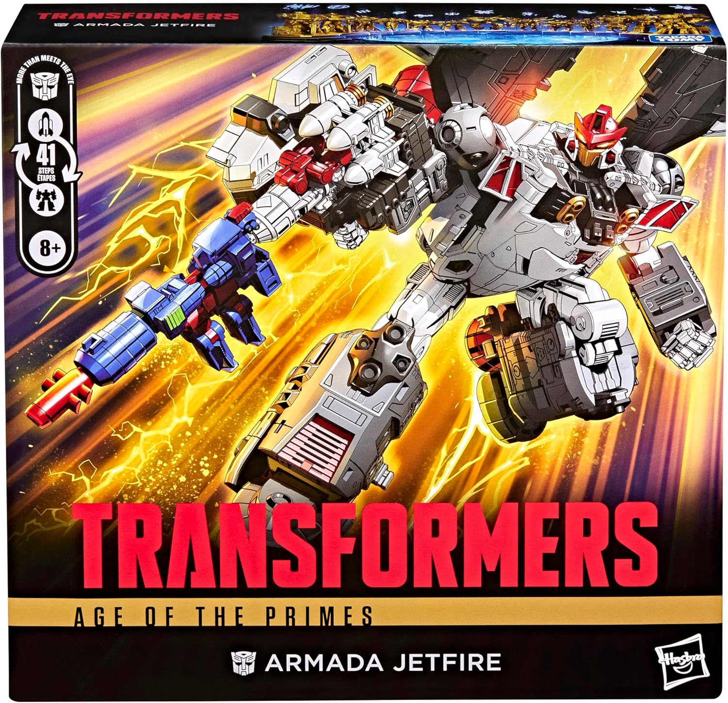 - 8-INCH COMMANDER CLASS ARMADA JETFIRE: This Transformers figure is 8 inches (20 cm) in robot mode and features deco and details inspired by the Transformers universe