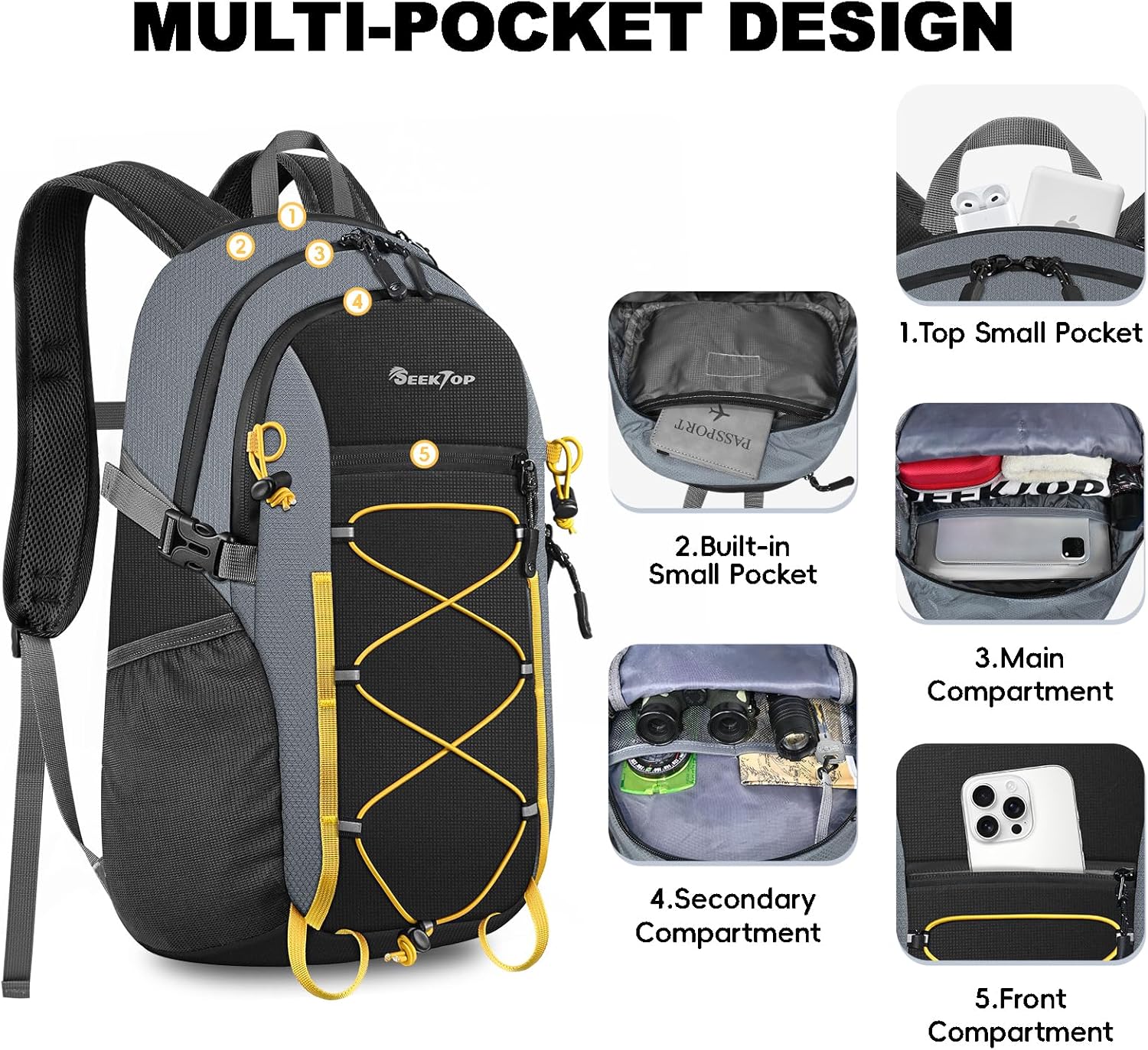 Seektop 20L Foldable Waterproof Hiking Backpack, Ultralight Small Lightweight Daypack Packable Backpack for Men Woman