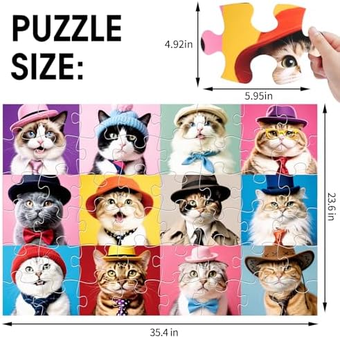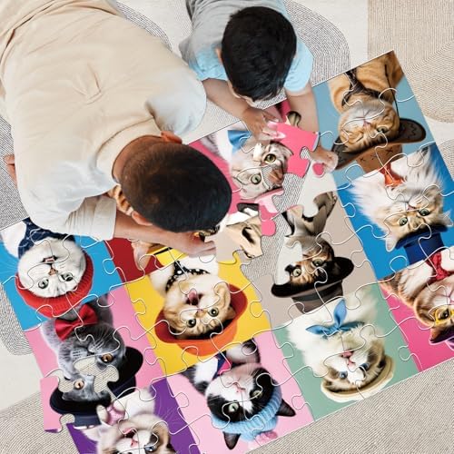 Jumbo Floor Puzzle for Kids,48 Piece Cat Jigsaw Puzzles,Pet Learning Educational Toys for Toddlers Ages 3-5,Children Easter Gift for Boy Girl Ages 4-8