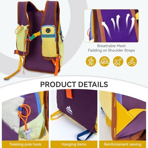 15L Small Hiking Backpack Travel Daypack Colorful Lightweight Packable Foldable Casual Backpack for Women Men
