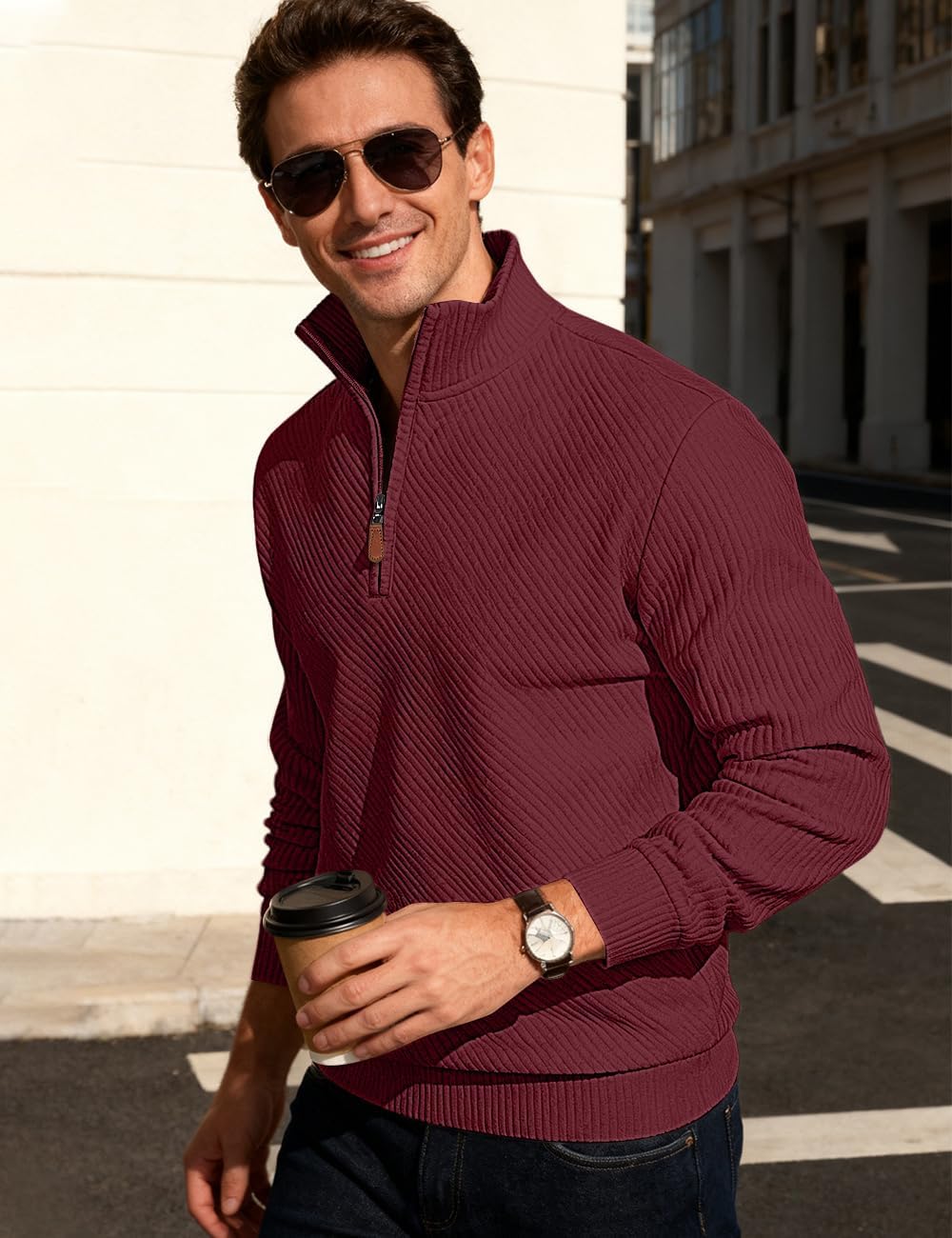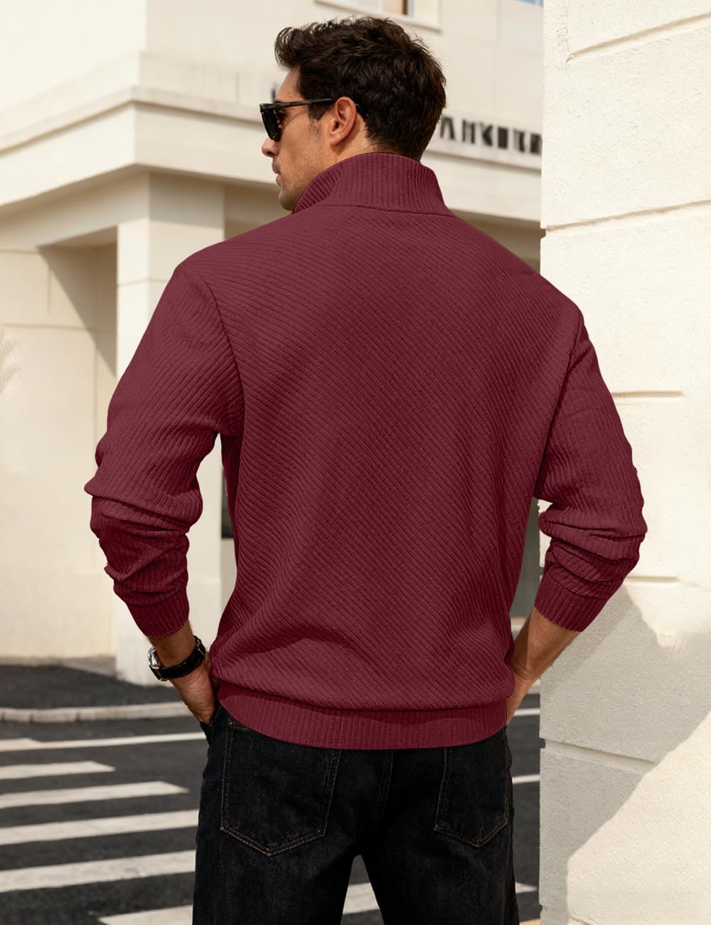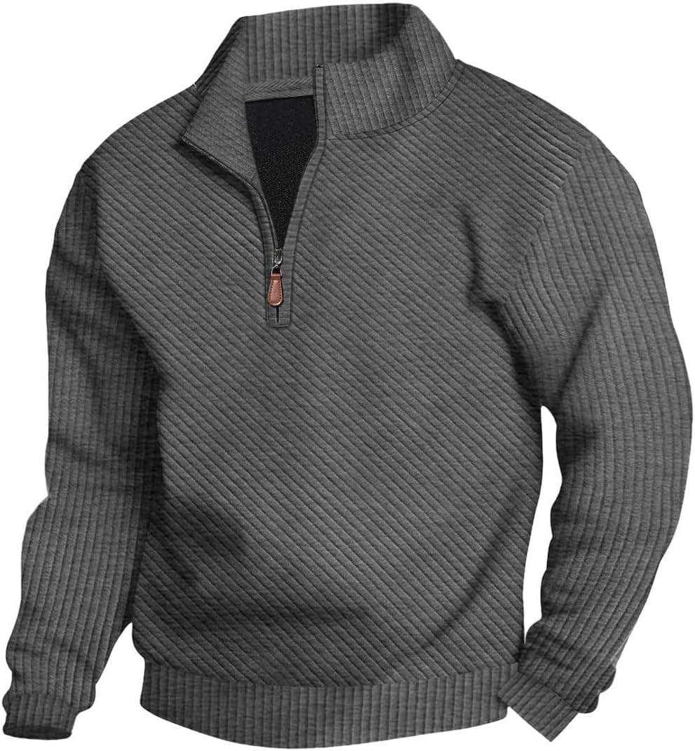 LINENNMAIN Mens Sweaters Pullover Sweater Casual Athletic Long Sleeve Quarter Zipper Stand Collar Sweatshirt