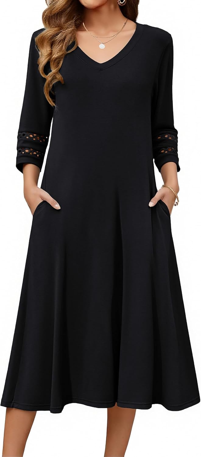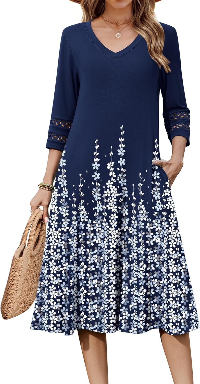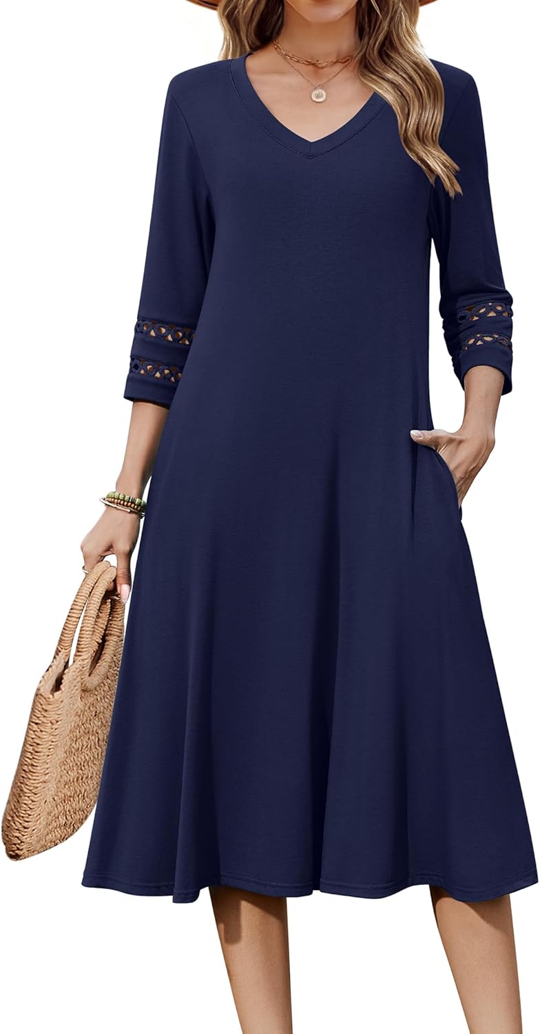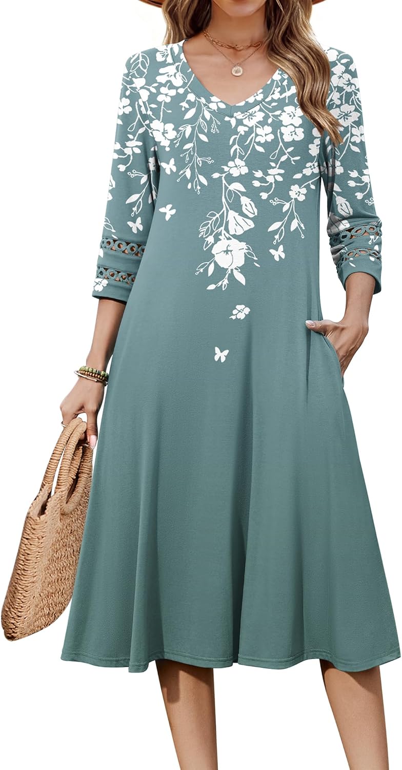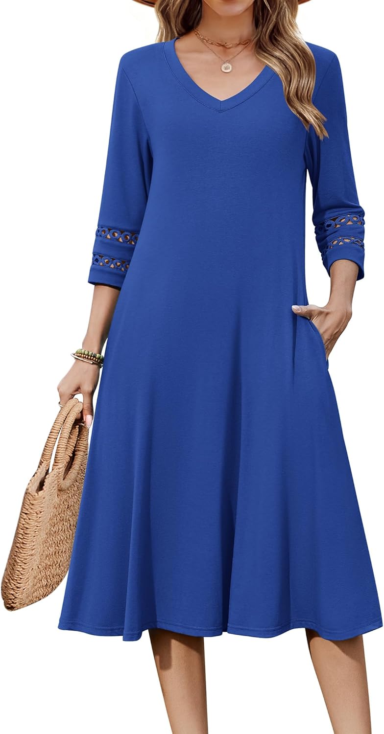 Zeagoo Women Casual Dress 3\/4 Sleeve Casual Loose Midi Dress