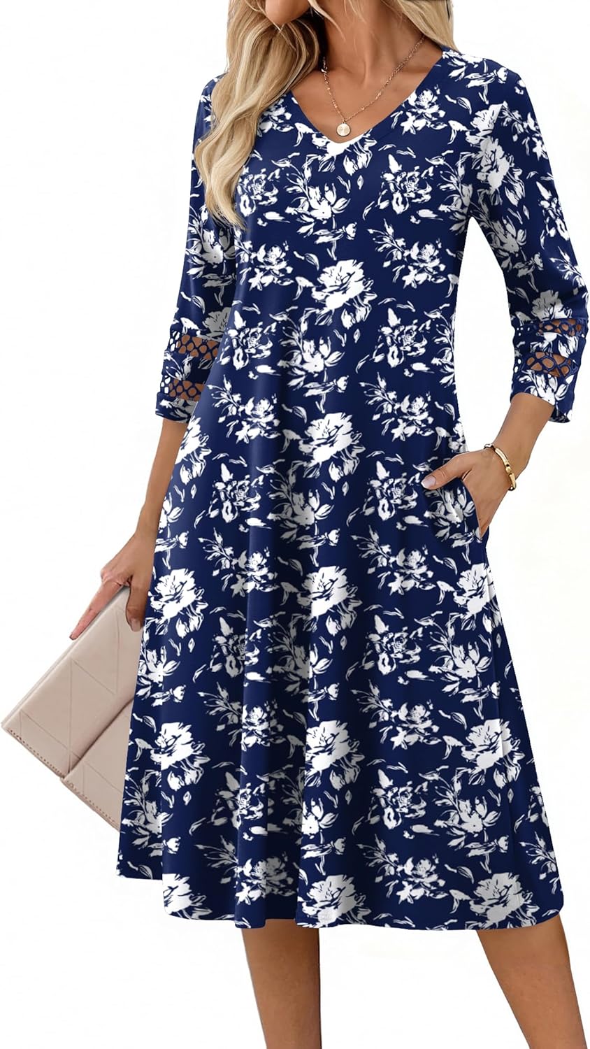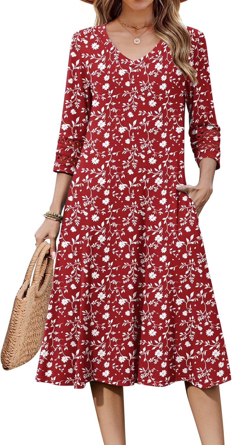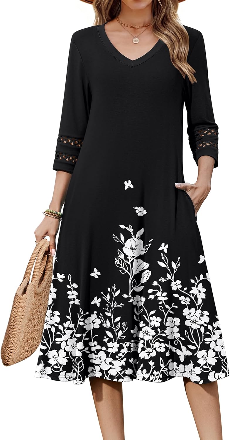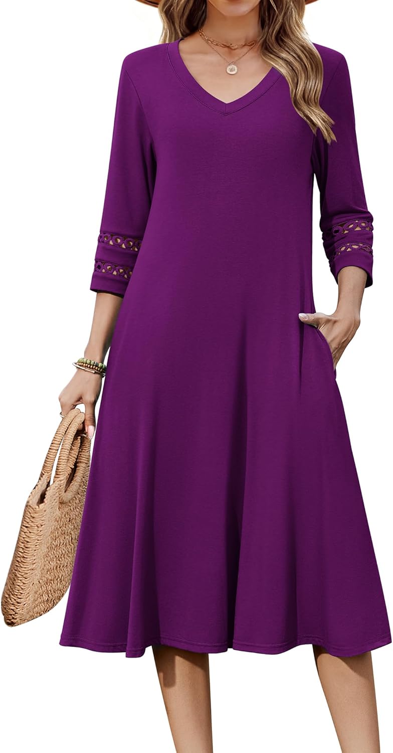 Zeagoo Women Casual Dress 3\/4 Sleeve Casual Loose Midi Dress