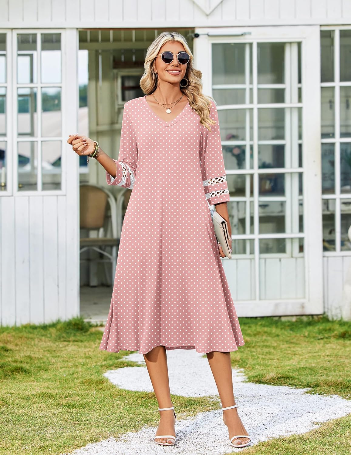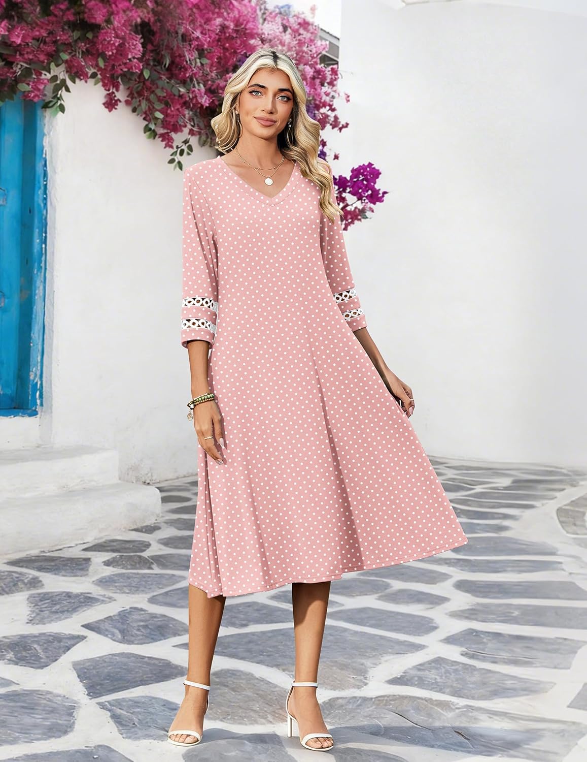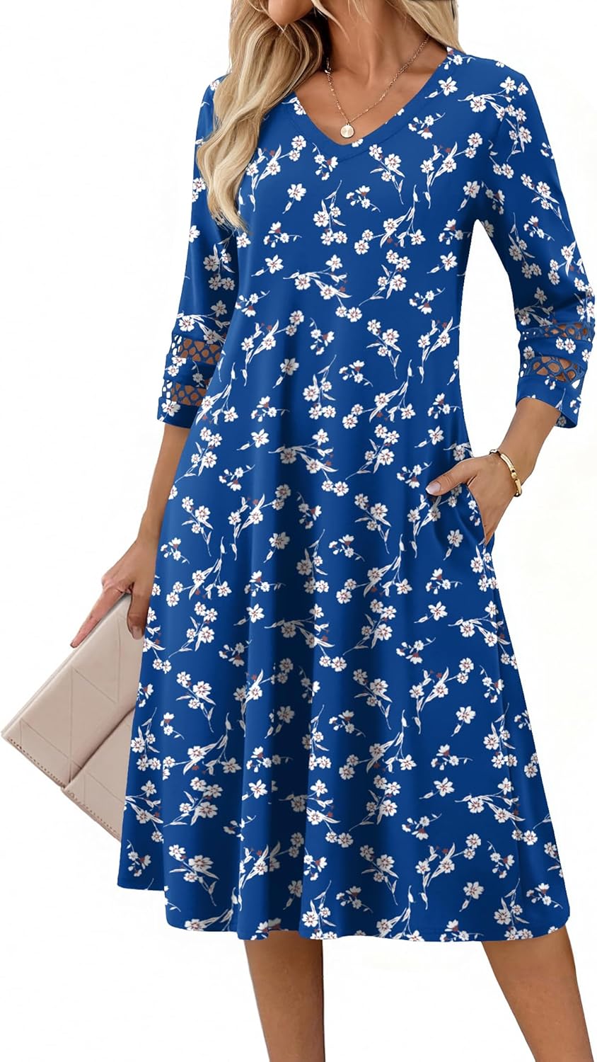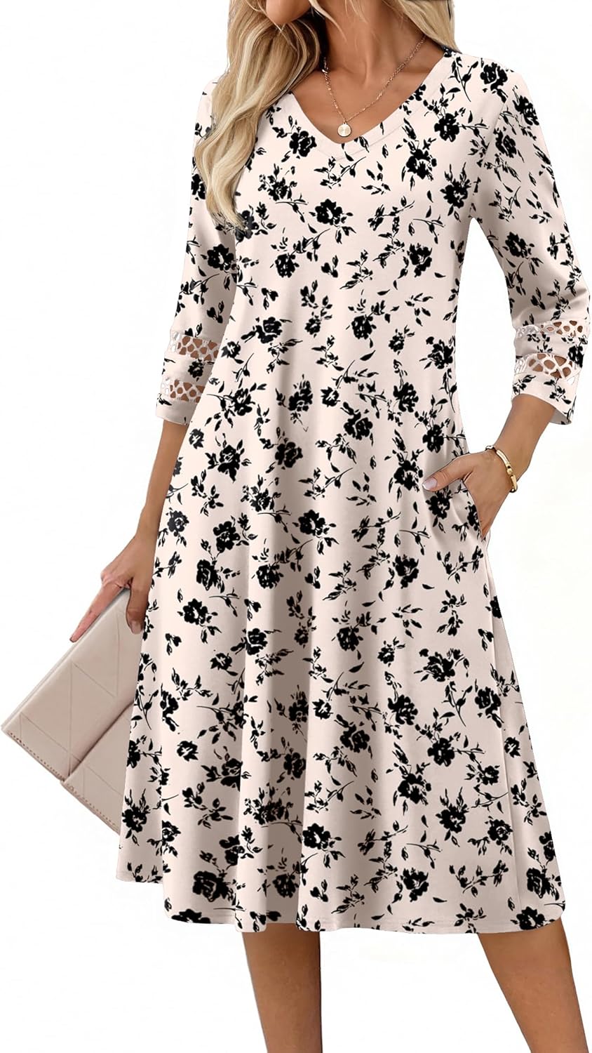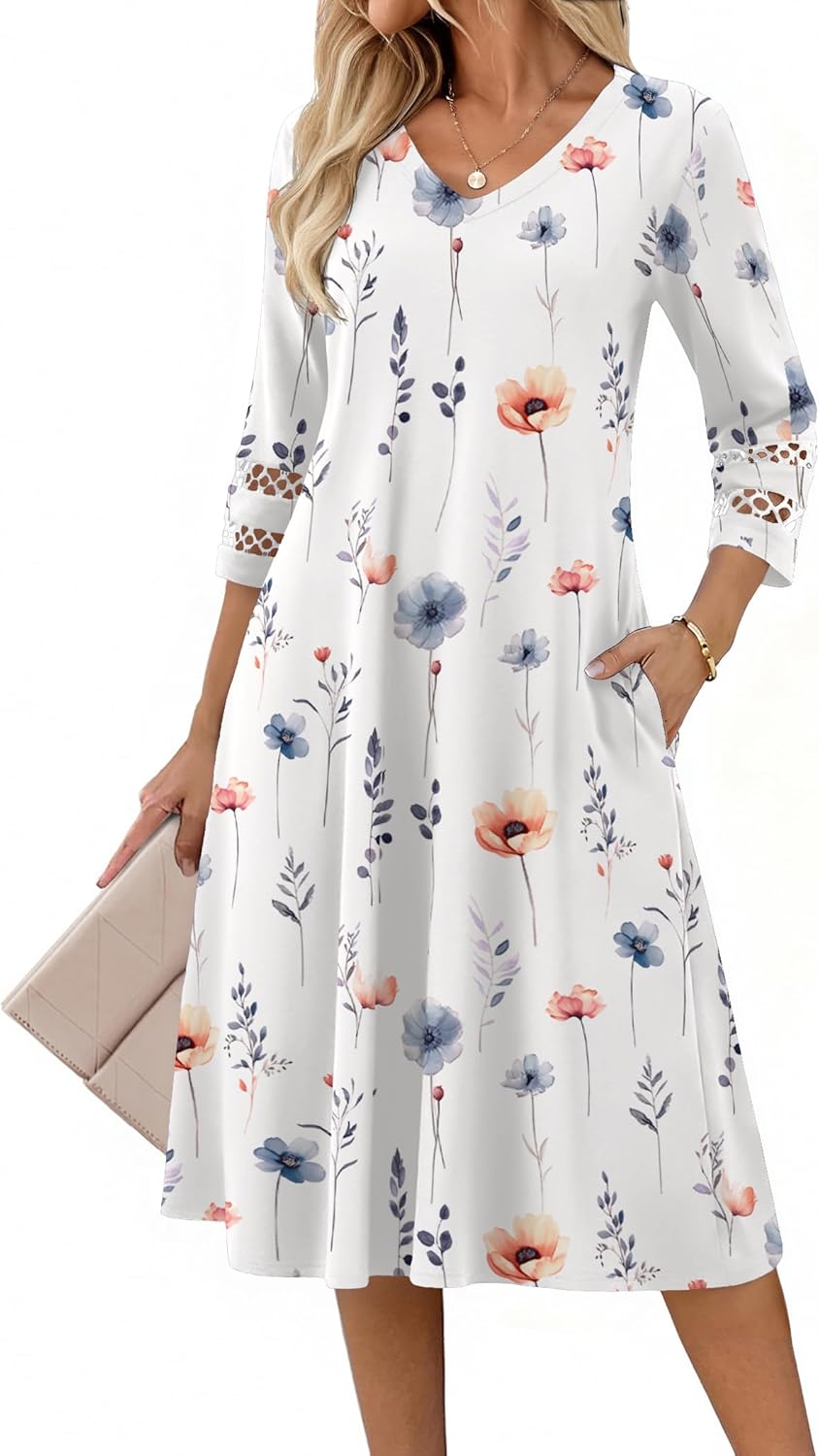 Zeagoo Women Casual Dress 3\/4 Sleeve Casual Loose Midi Dress