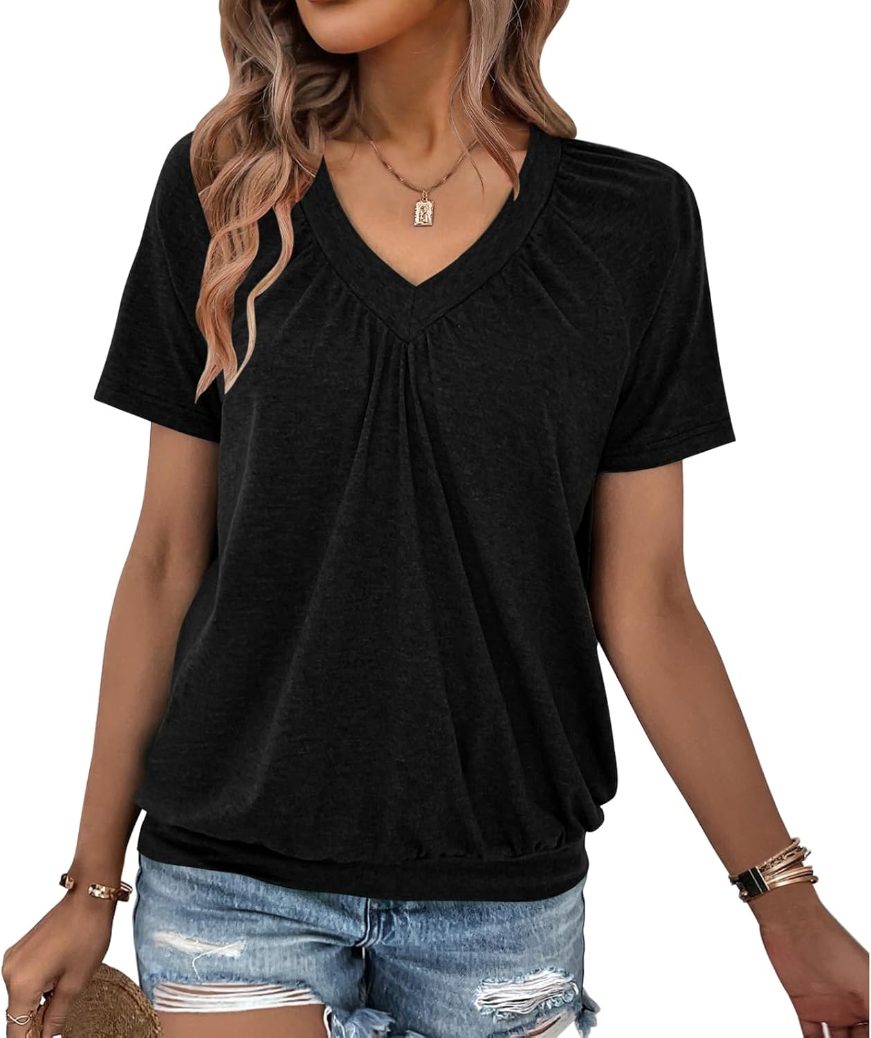 AIZHINENG 2 Pack Summer Tops for Women V Neck Shorts Sleeve Casual Ruched Tops Women T Shirts Clothes Trendy 2026