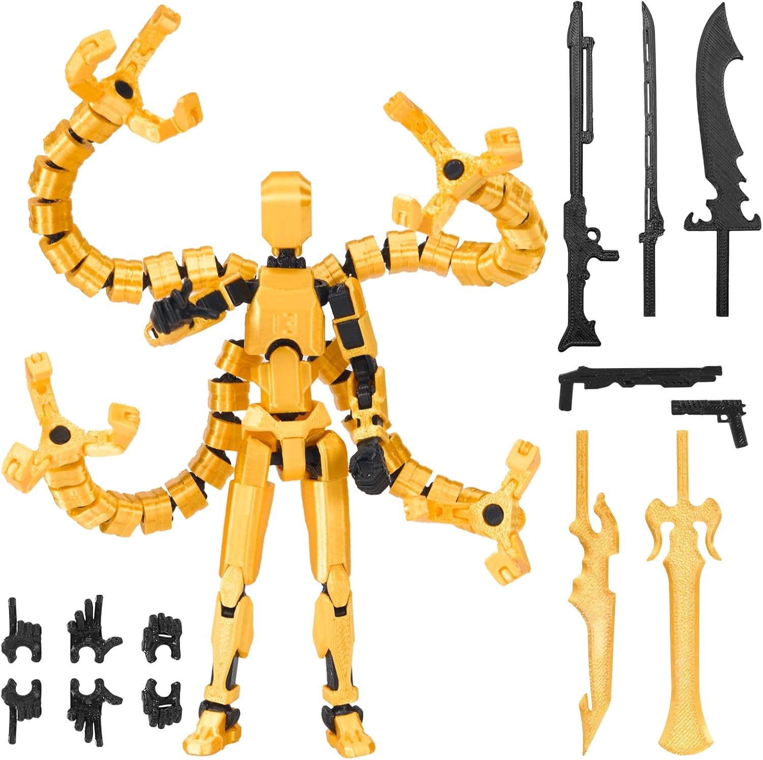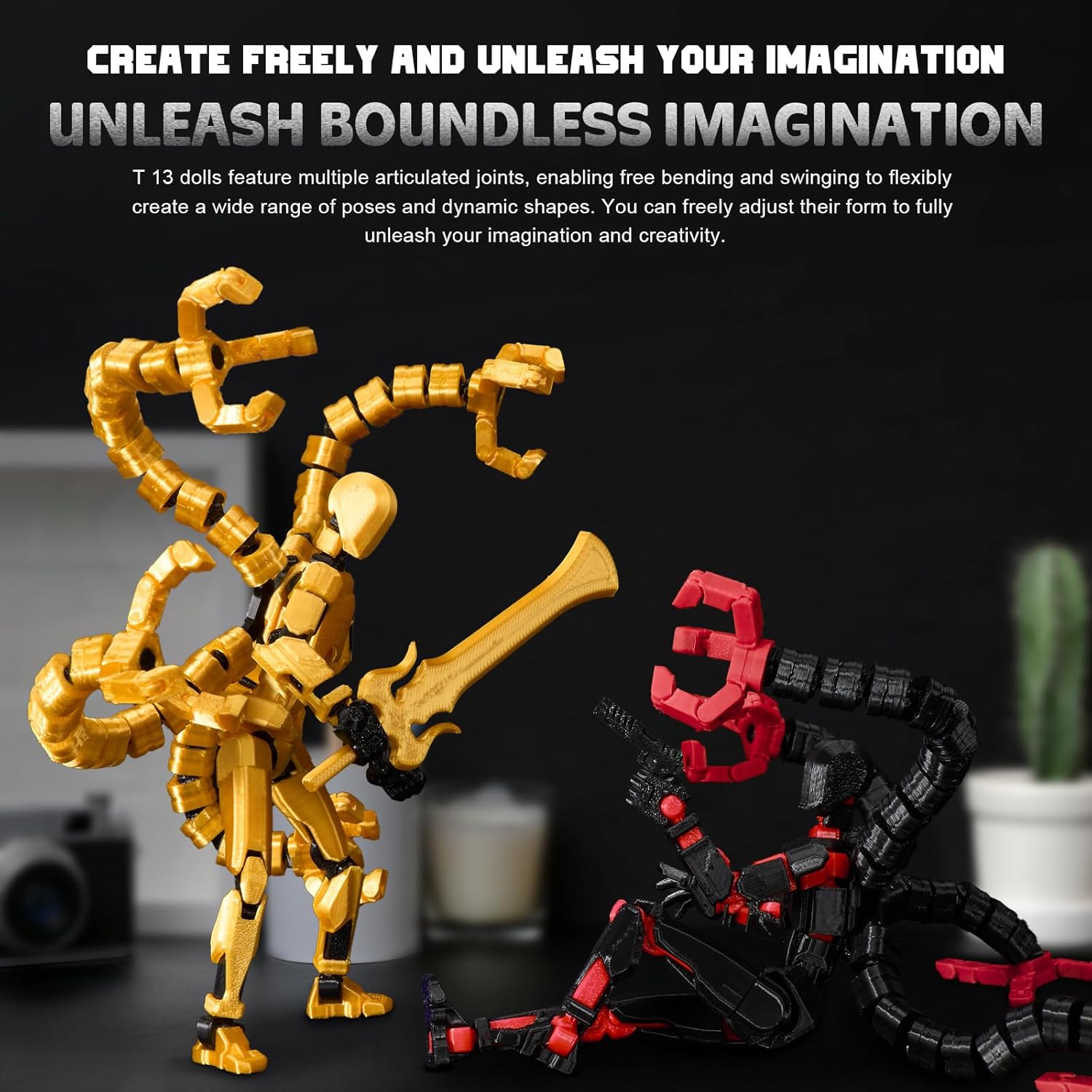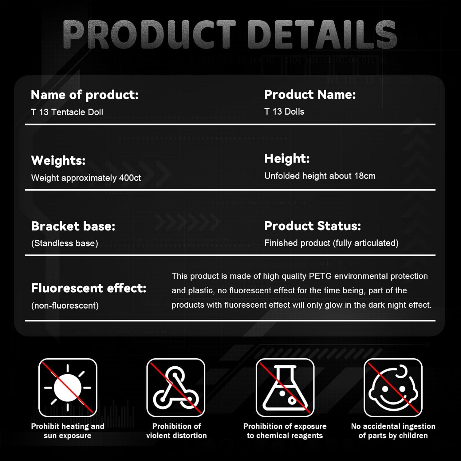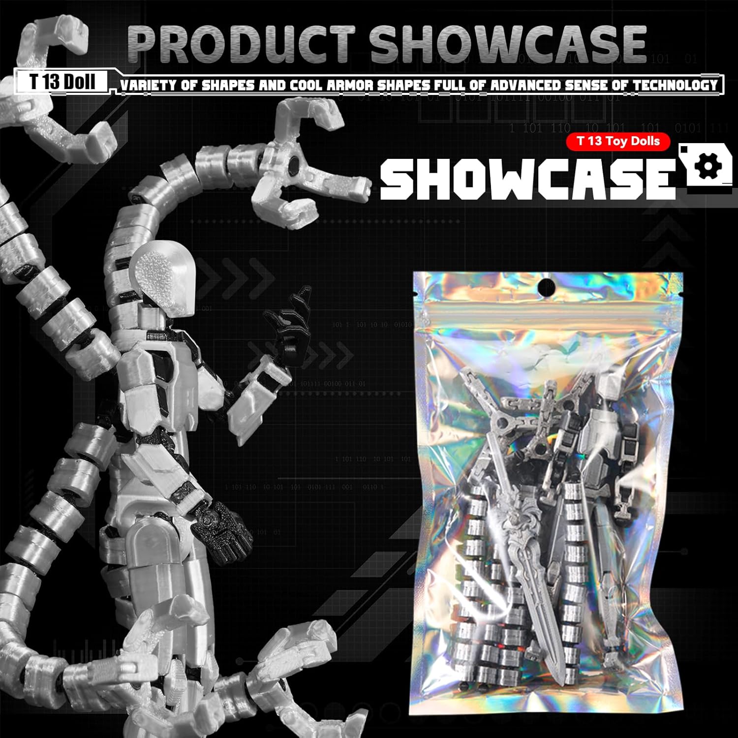 T13 Figure Set & Titan 13 Toys(3d Printed Action Figures Assembly Completed)(Multi-Jointed Movable)(Octopus Man Designs Includes Various Accessories)Dummy T 13 Figures Desk Decoration (Silvery)