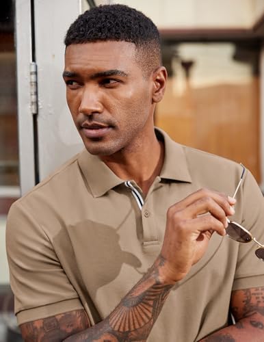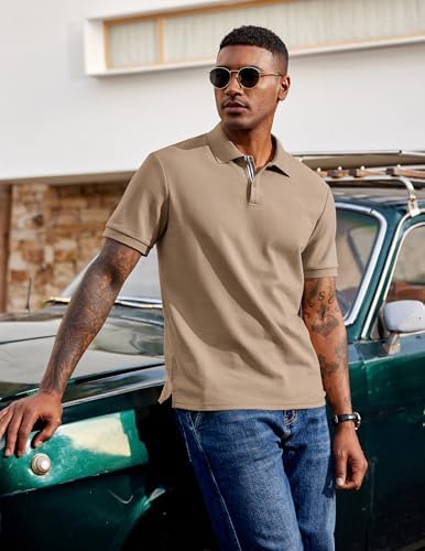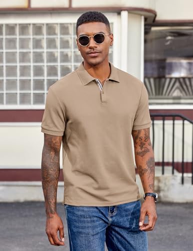 PREMIUM FABRICS: Men's polo shirt is made of cotton pique fabric,soft, lightweight, and breathable. This cotton polo shirt will bring you a more relaxed and comfortable wearing experience. STYLISH DESIGNS: Men's short sleeve polo shirts feature a classic polo collar with two buttons placket, ribbed collar and cuffs won't deform easily. The patchwork weaving design on the front placket and hem slit for added style. CLASSIC POLO SHIRT: Mens casual polo shirt is versatile and perfect for any occasion. Pair it with shorts, jeans, or sweatpants for a relaxed style, or dress it up with trousers or wear it under a jacket or blazer for a smart casual look. OCCASIONS: Mens polo t shirt is a great choice for various occasions, such as daily wear, business, office work, meeting, wedding, party, dating, travel, streetwear, golf, and so on. Men's collared shirts are also an ideal gift for yourself, family, Dad, husband, Son, friends and lovers on Father's Day, Birthday, Valentine's Day and other holidays. WARM TIP: This men's polos is machine washable. Please check the size chart in the product description before ordering to ensure the best fit.