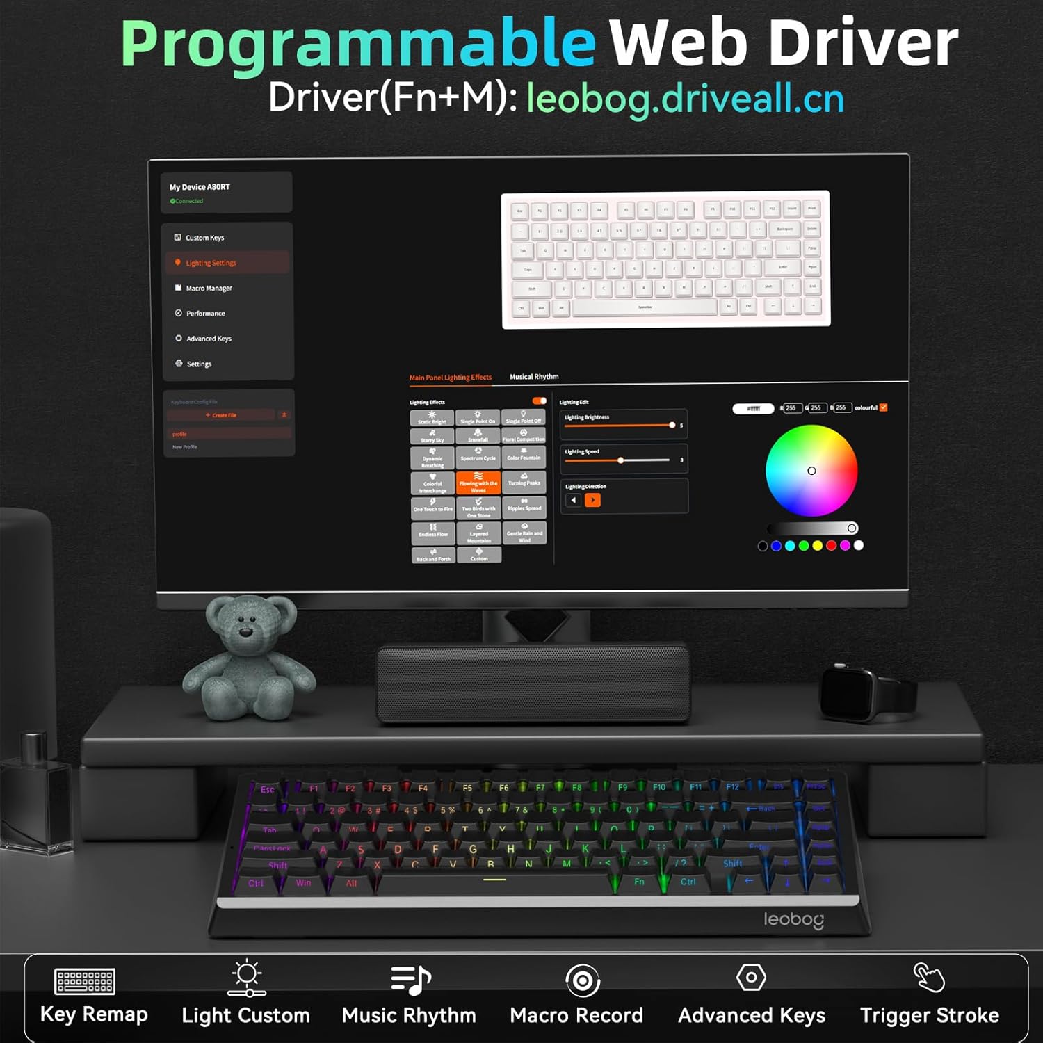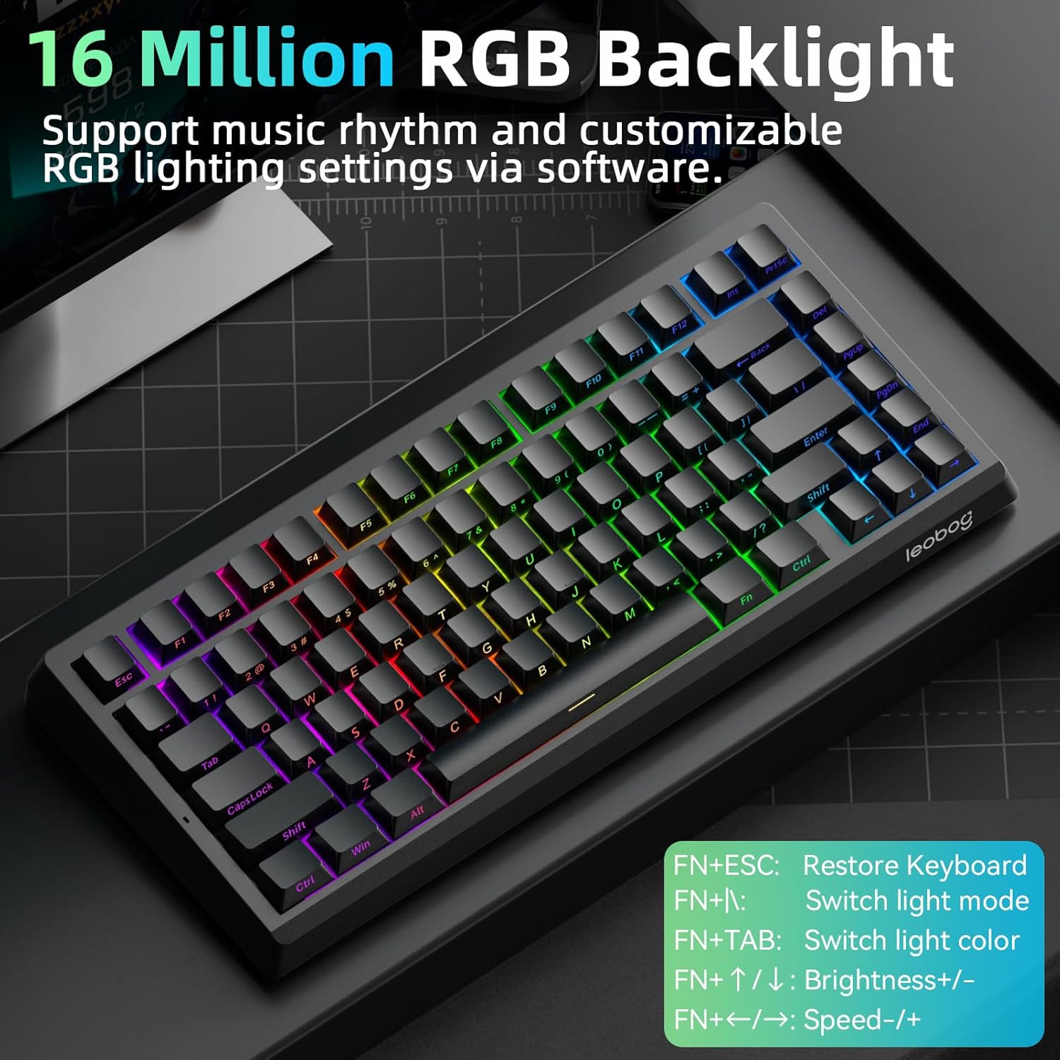 LEOBOG A80 RT Hall Effect Gaming Keyboard Wired, Rapid Trigger Magnetic Switch Keyboard with 0.01mm RT Adjustable Actuation, 8000Hz Polling Rate, RGB Backlit Mechanical Keyboard 75% for PC Gamer
