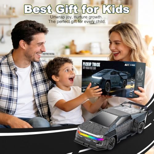 Remote Control Car,All Terrain 2.4GHz RC Truck for 3-12 Year Old Boys, Electric Vehicle RC Car with LED Lights for Kids, Birthday Gifts for Kids (Gray)
