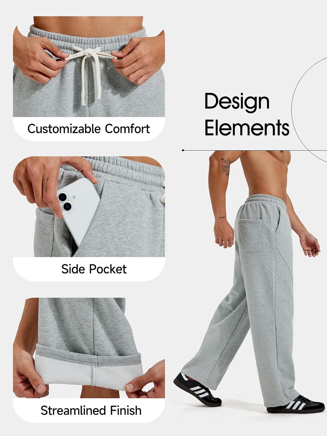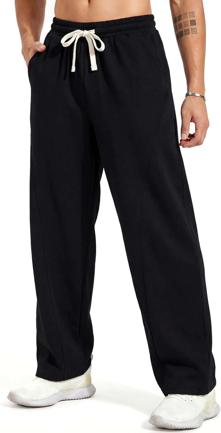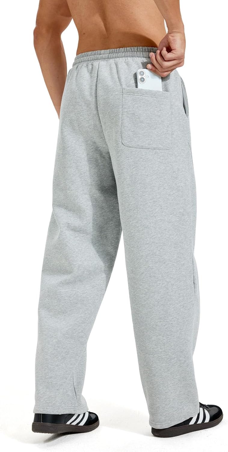 ZUY Men's Baggy Fleece Sweatpants Cotton Lounge Open Bottom Athletic Pants Straight Leg Drawstring with Pockets