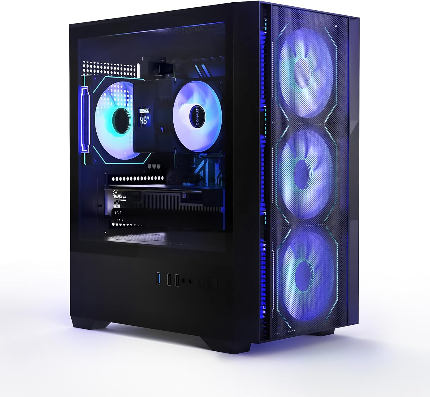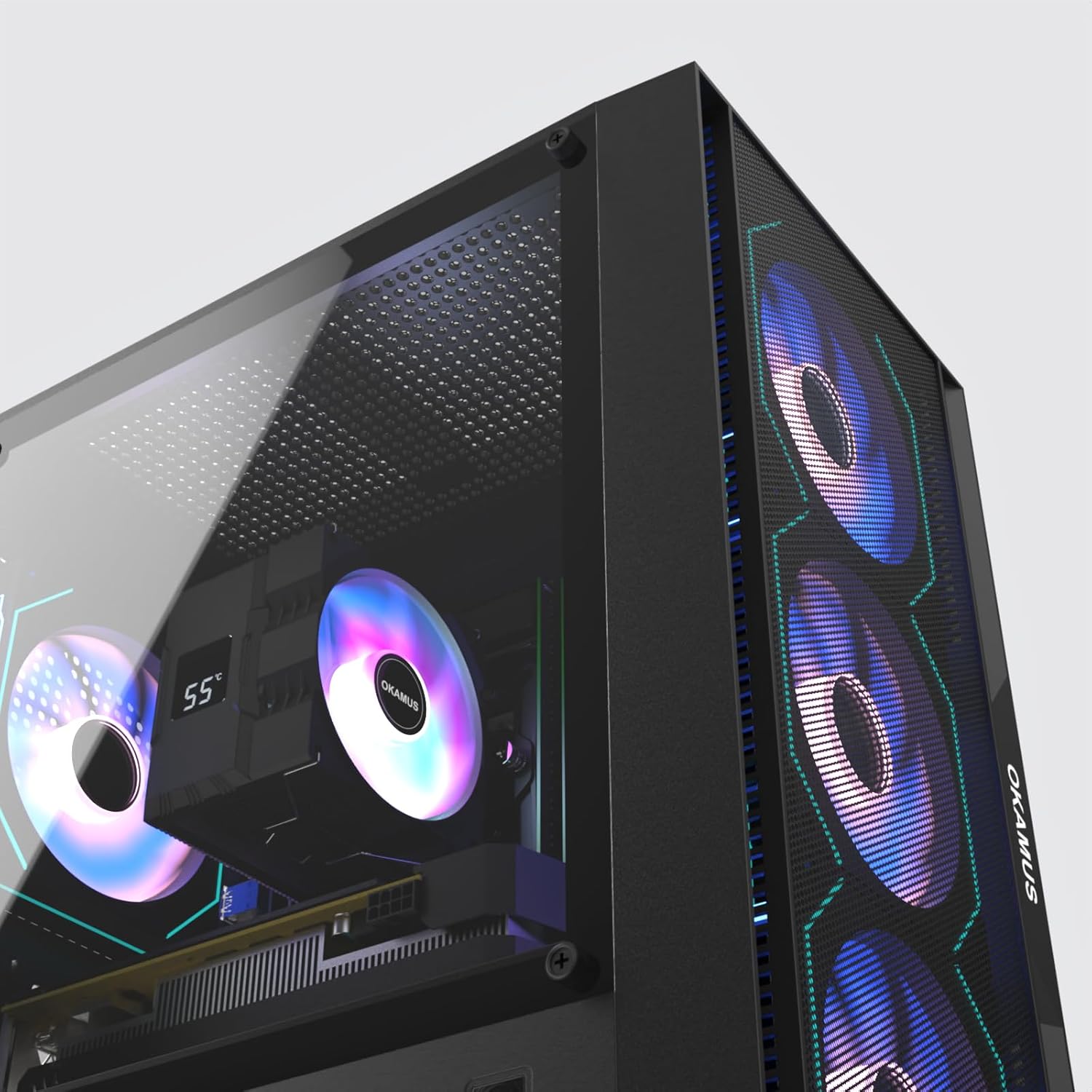 ARGB Lighting and Advanced Cooling - Stay cool under pressure with four black ARGB fans and a digital temperature display CPU cooler. Customize lighting effects easily using the included remote.