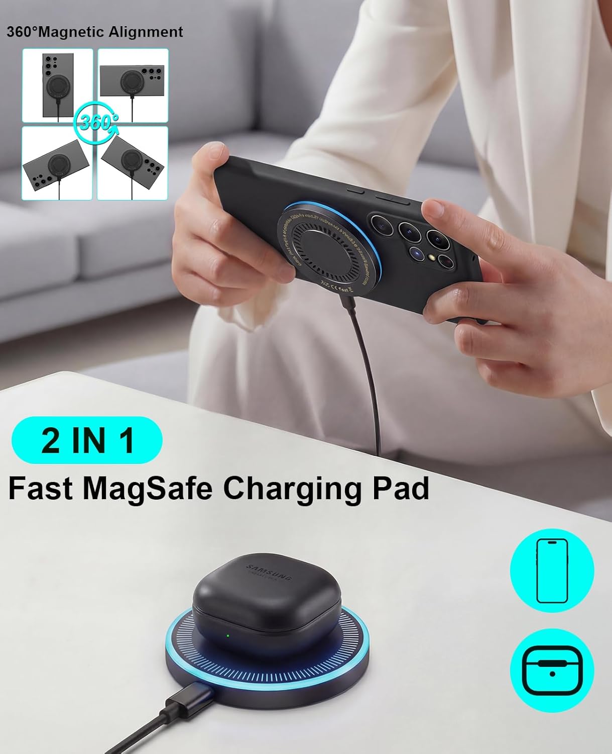 Wireless Charger 2Pack 6FT Samsung Magnetic Wireless Charger Fast Charging Pad with USB-C\/A Ports for Samsung Galaxy S26 S25 Ultra\/S24 FE\/S23 Ultra\/S22\/S21\/Z Google Pixel 9-7, Strong Magnet Tech