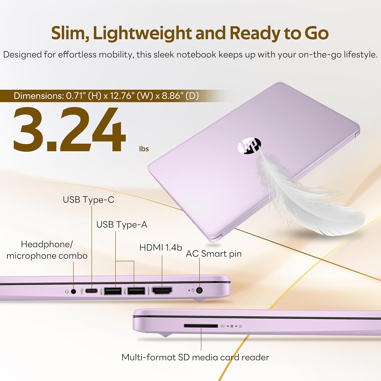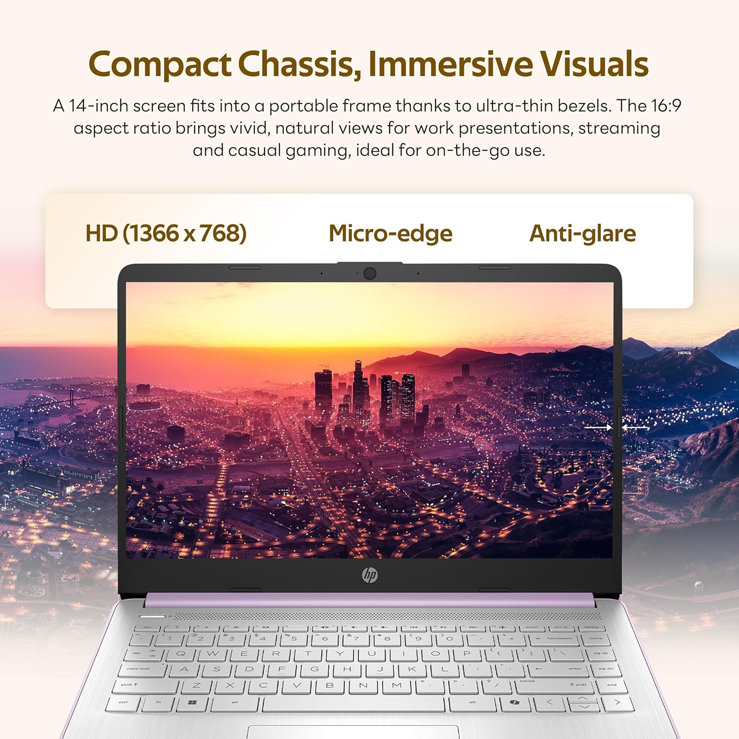 【14.0-inch diagonal, HD Display】Experience clear visuals and ample screen space for work and entertainment, all within a compact and portable design.