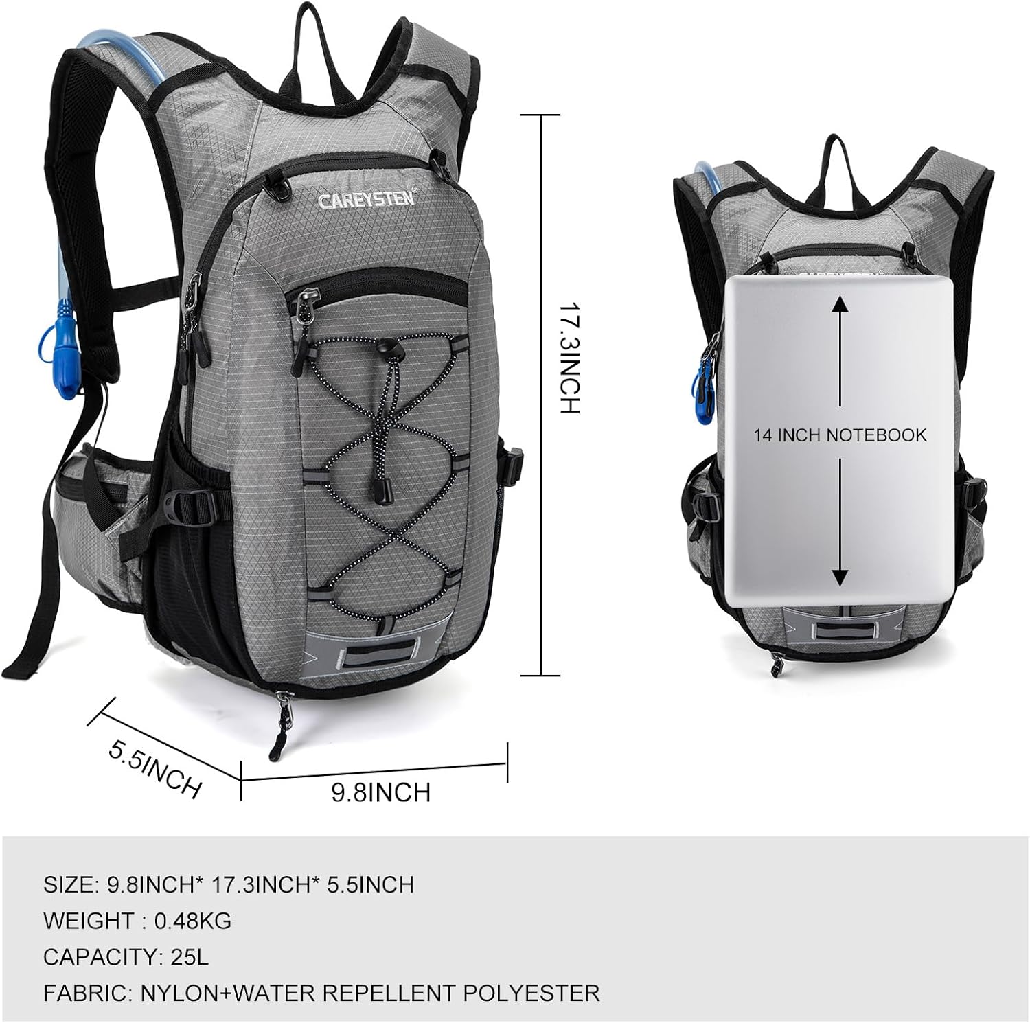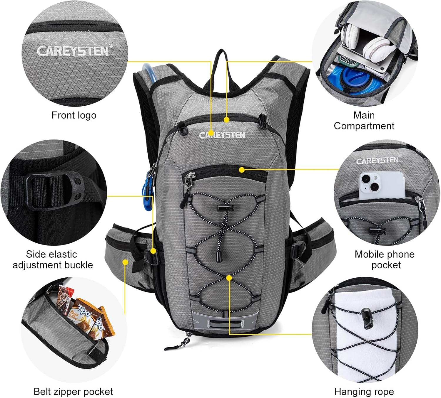 CAREYSTEN Hydration Backpack Cycling Backpack Women Running Backpack Water Backpack for Hiking Biking Backpack for Men Equipped with 2L Water Bag