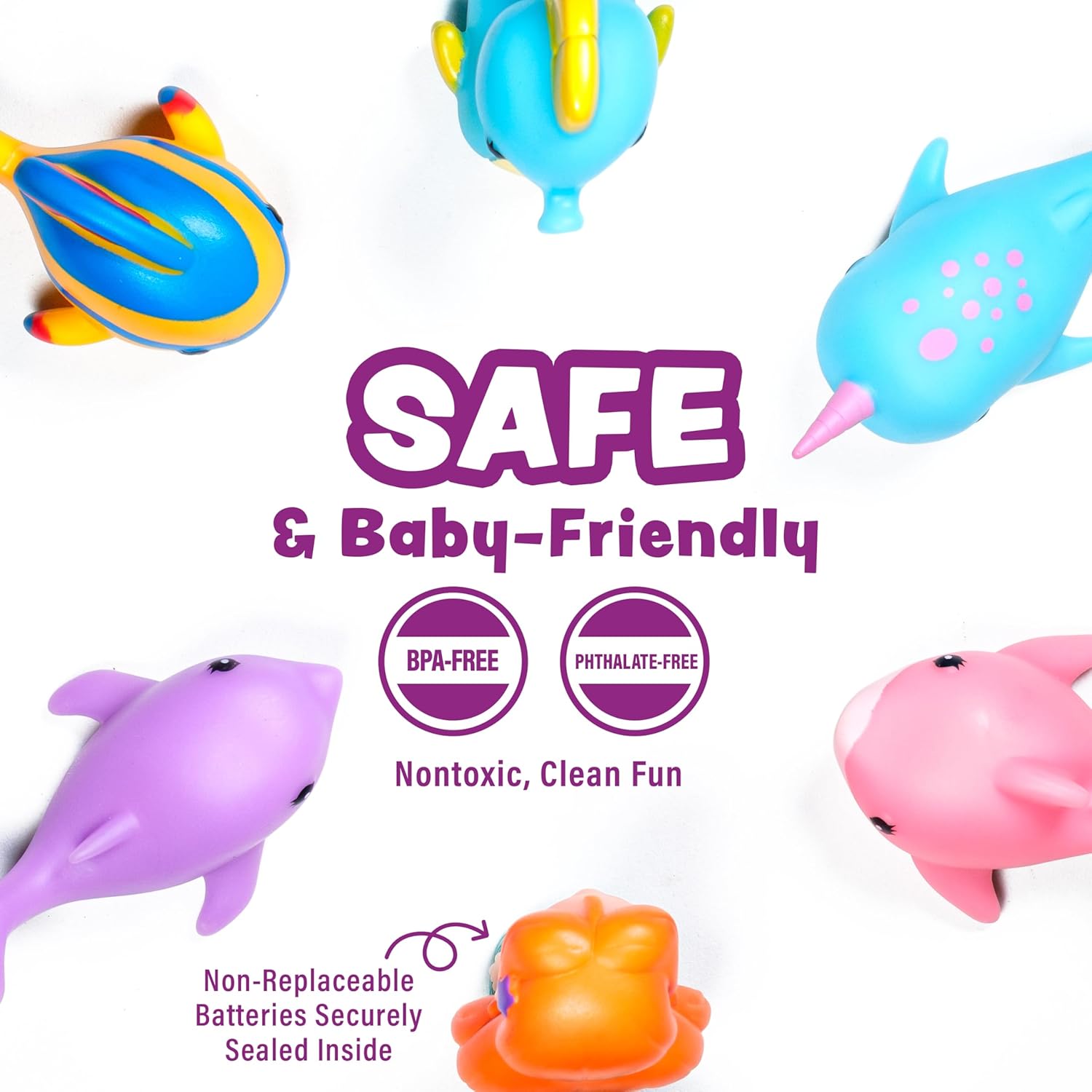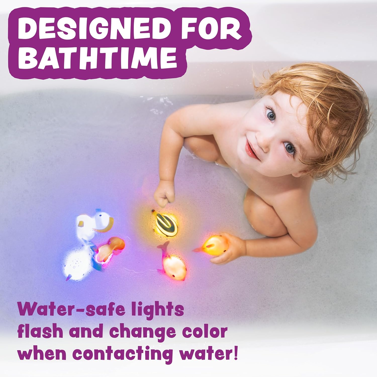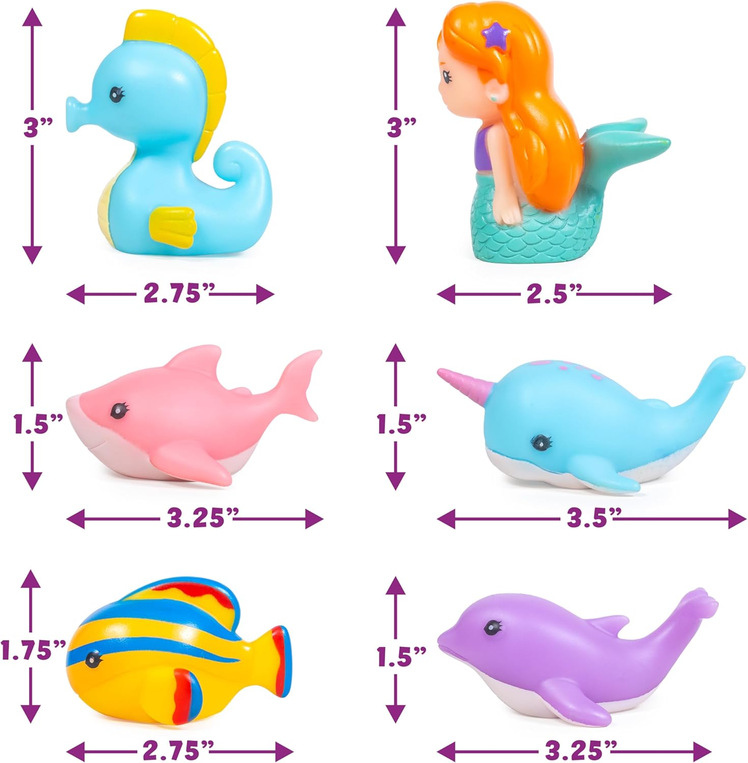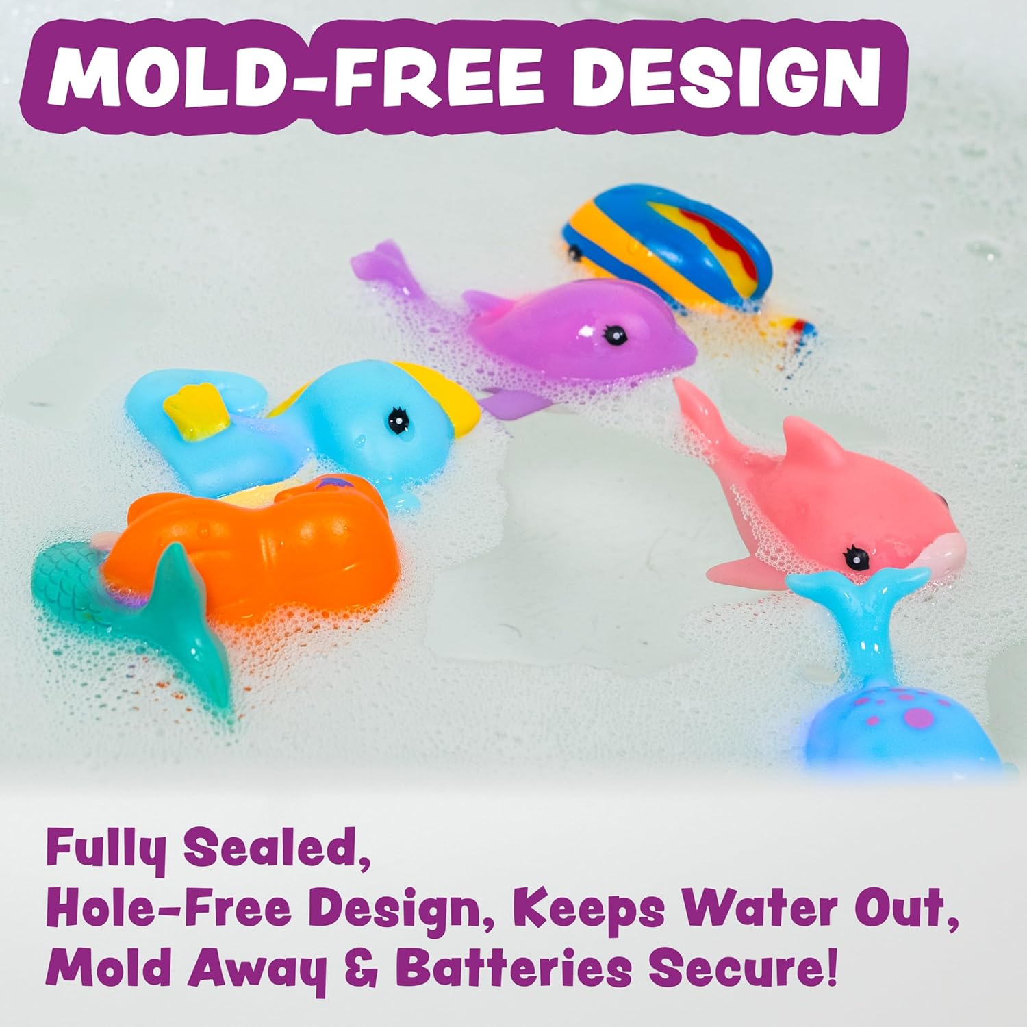 Tub Works® Mermaid Lagoon™ Light Up Bath Toys, 6 Pack | Water-Activated Light Up Toys Flash & Change Color | Easy-Grip Baby Girl & Toddler Bath Toys | Sensory Mermaid Toy Bathtub Toys with Bat