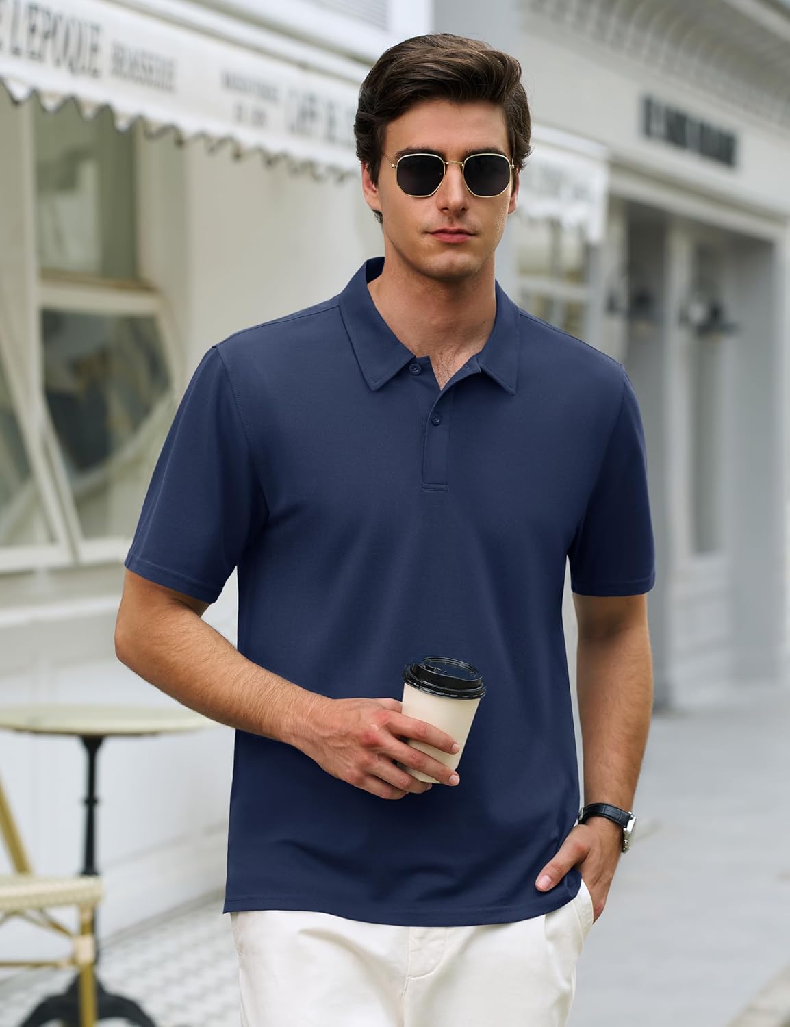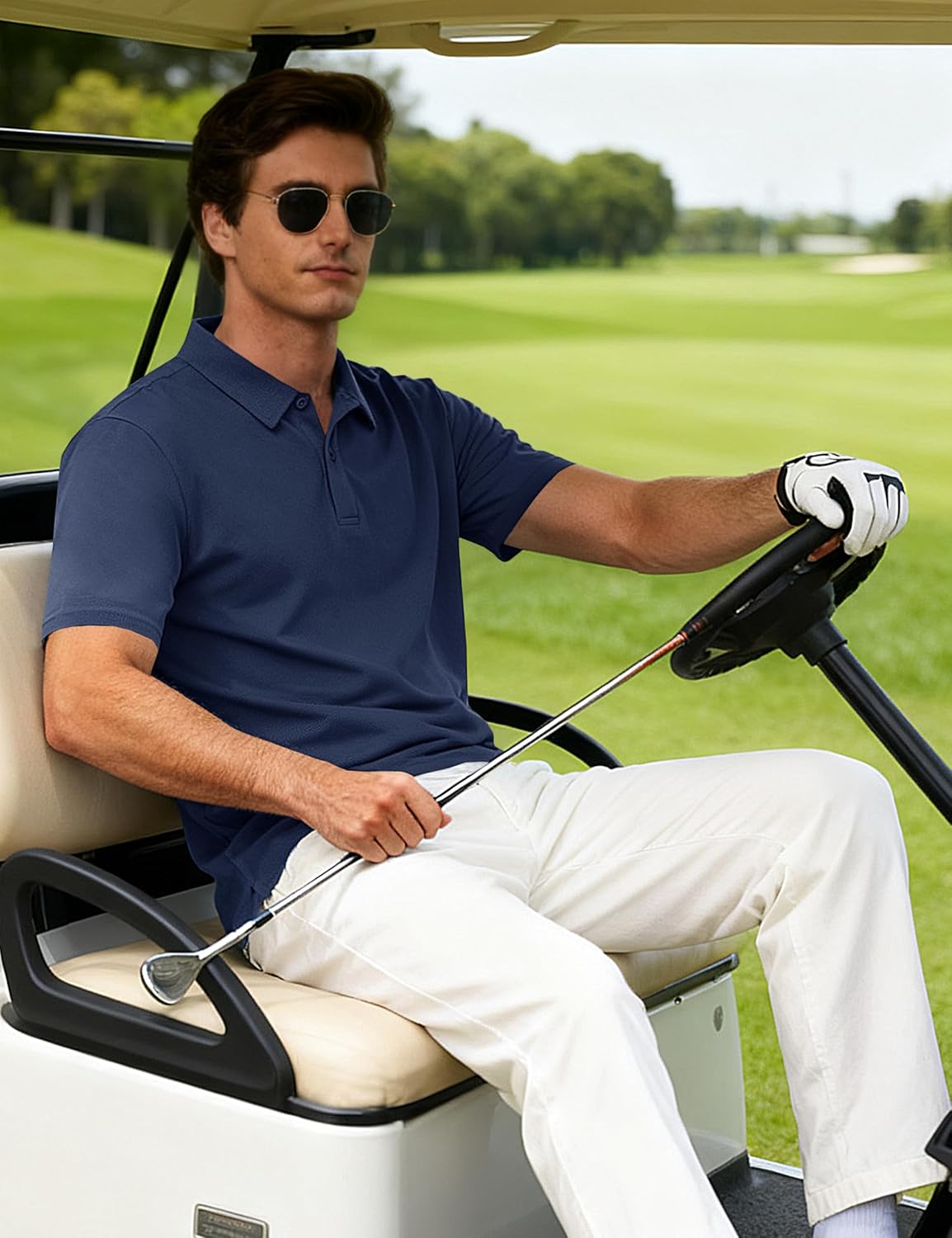 Cotrasen Men's Polo Shirts Short Sleeve 2 Buttons Cotton Collared Golf Shirts Dry Fit Pique Polos for Summer
