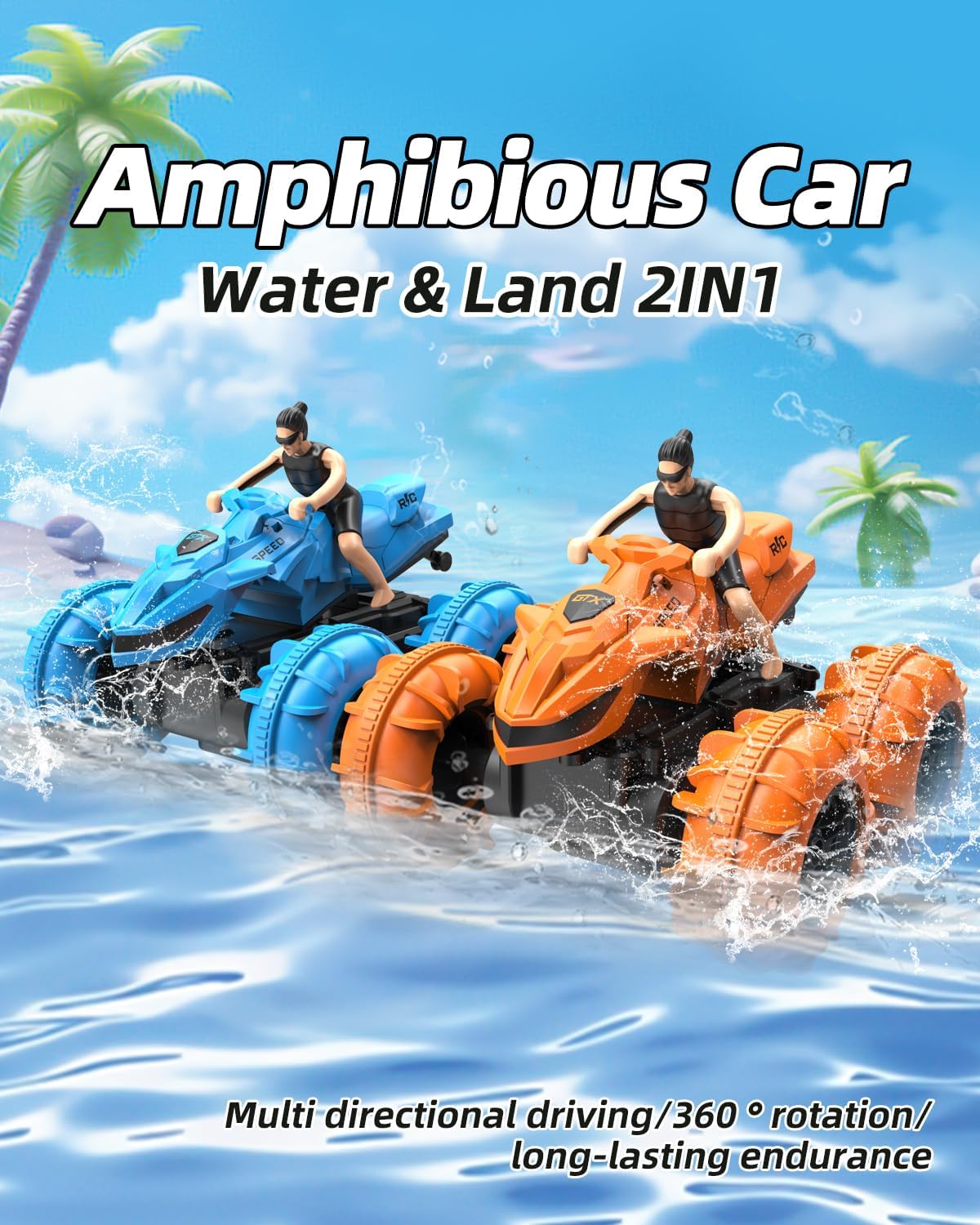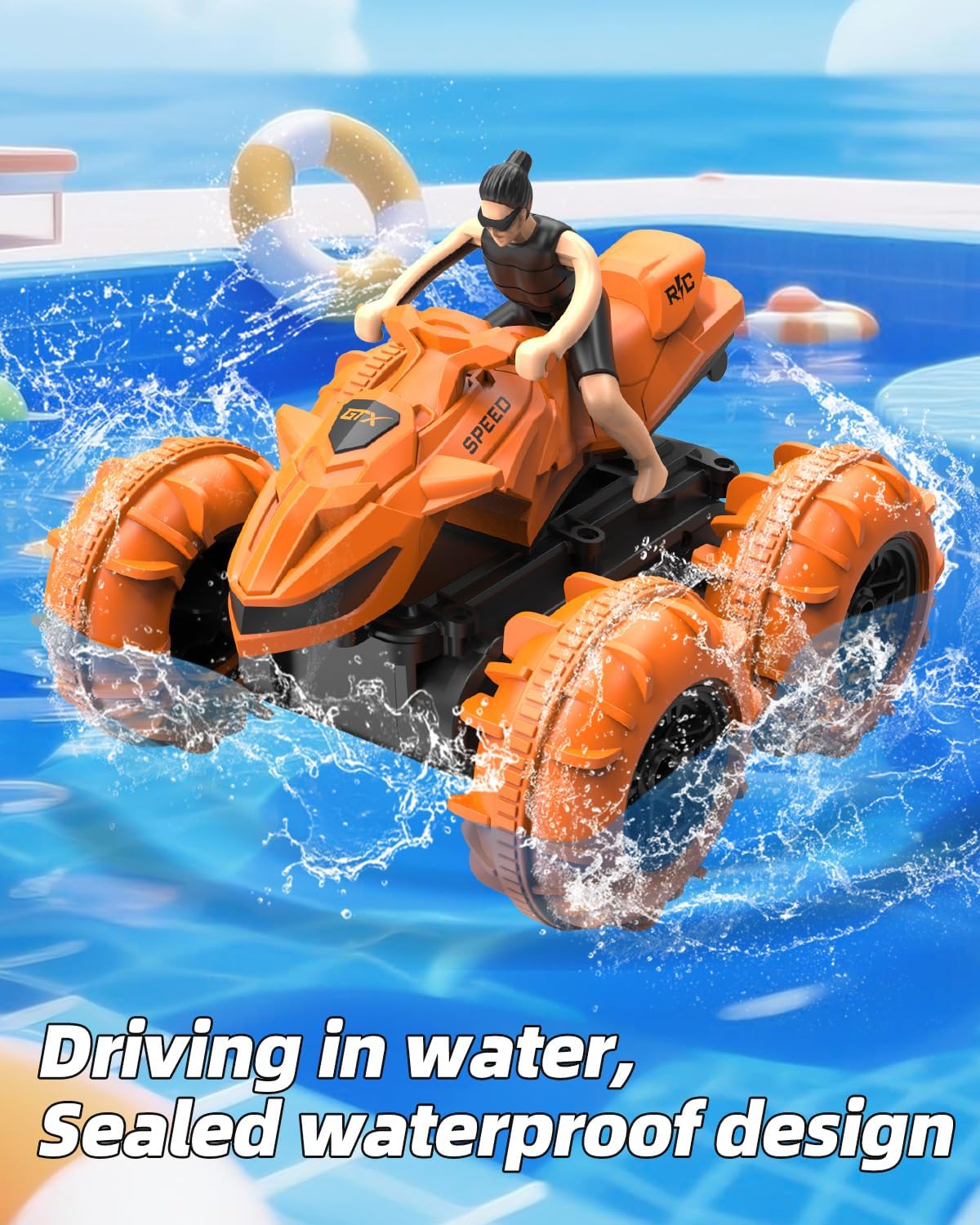 LMRC Remote Control Car, Fast Amphibious RC Cars, All Terrain Off-Road RC Truck, 2.4Ghz Waterproof Cyber Truck Pool Water Toys, Gifts for Birthday Christmas(Orange)