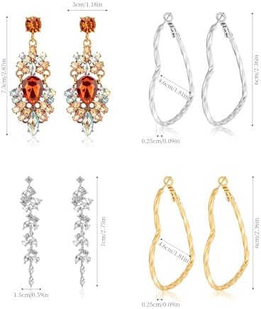 4-Pack Versatile Earring Set: Mix & Match for Every Occasion .This 4-pair earring bundle includes 2 glamorous Cubic Zirconia drop earrings (vibrant orange + multi-tonal accents) and 2 Love Heart hoop earrings (silver & gold-tone). Perfect for daily wear, date nights, weddings, or holiday parties—switch styles to match dresses, blouses, or casual outfits! Never Outdated: Focus on timeless elegance—this 4-piece earring set transcends fleeting trends with classic design. Perfect Gift for Fashion Lovers (Ready-to-Gift Set):Packaged as a 4-piece set, this earring collection is an ideal gift for birthdays, anniversaries, Mother’s Day. It suits diverse style preferences (from bold to minimalist) in one affordable bundle! On-Trend Styles at Unbeatable Value :Get 4 on-trend earring designs (Cubic Zirconia drop + Love Heart hoop earrings) in one set—no need to buy individual pairs! This bundle offers premium style and quality at a budget-friendly price, perfect for updating your jewelry collection or gifting. Mix & Match Ready: Switch between styles in seconds to refresh your look and keep your jewelry collection feeling new.