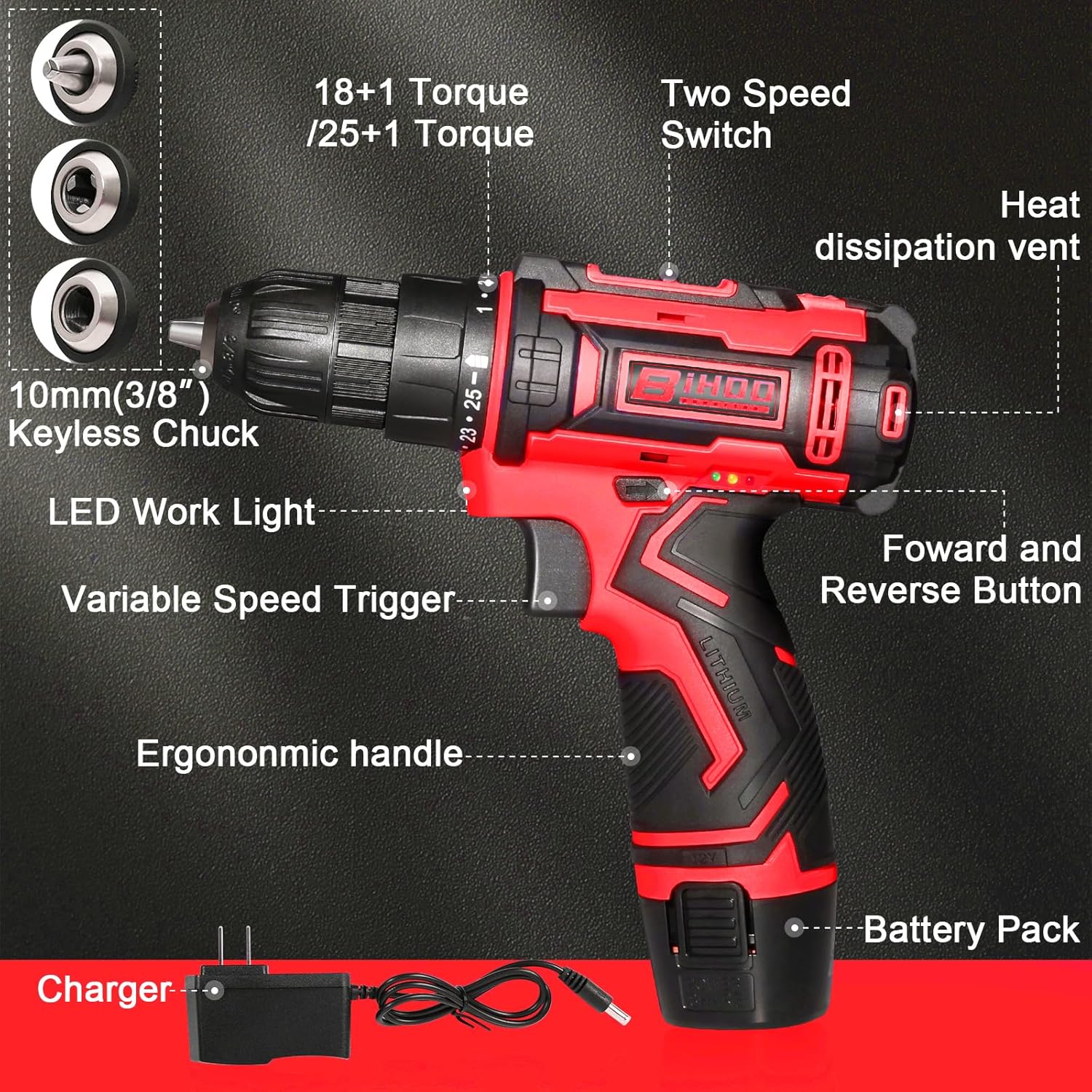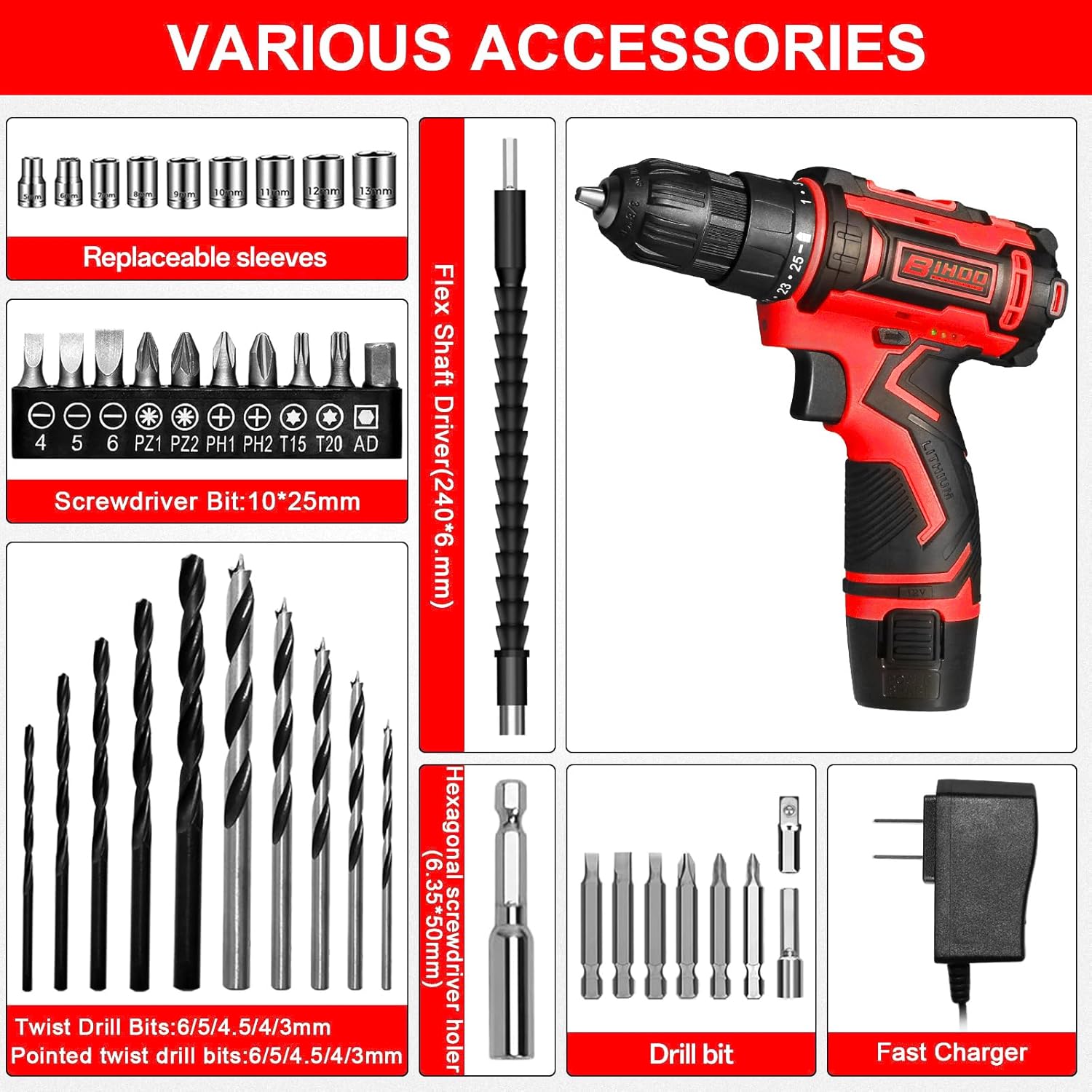 • ? 【Powerful 12V Lithium-Ion Battery & Fast Charging】 Equipped with a high-capacity 1500mAh 12V rechargeable battery and quick charger, this cordless drill provides long-lasting power for continuous home projects. The battery maintains stable output for drilling, driving, and screwing tasks.